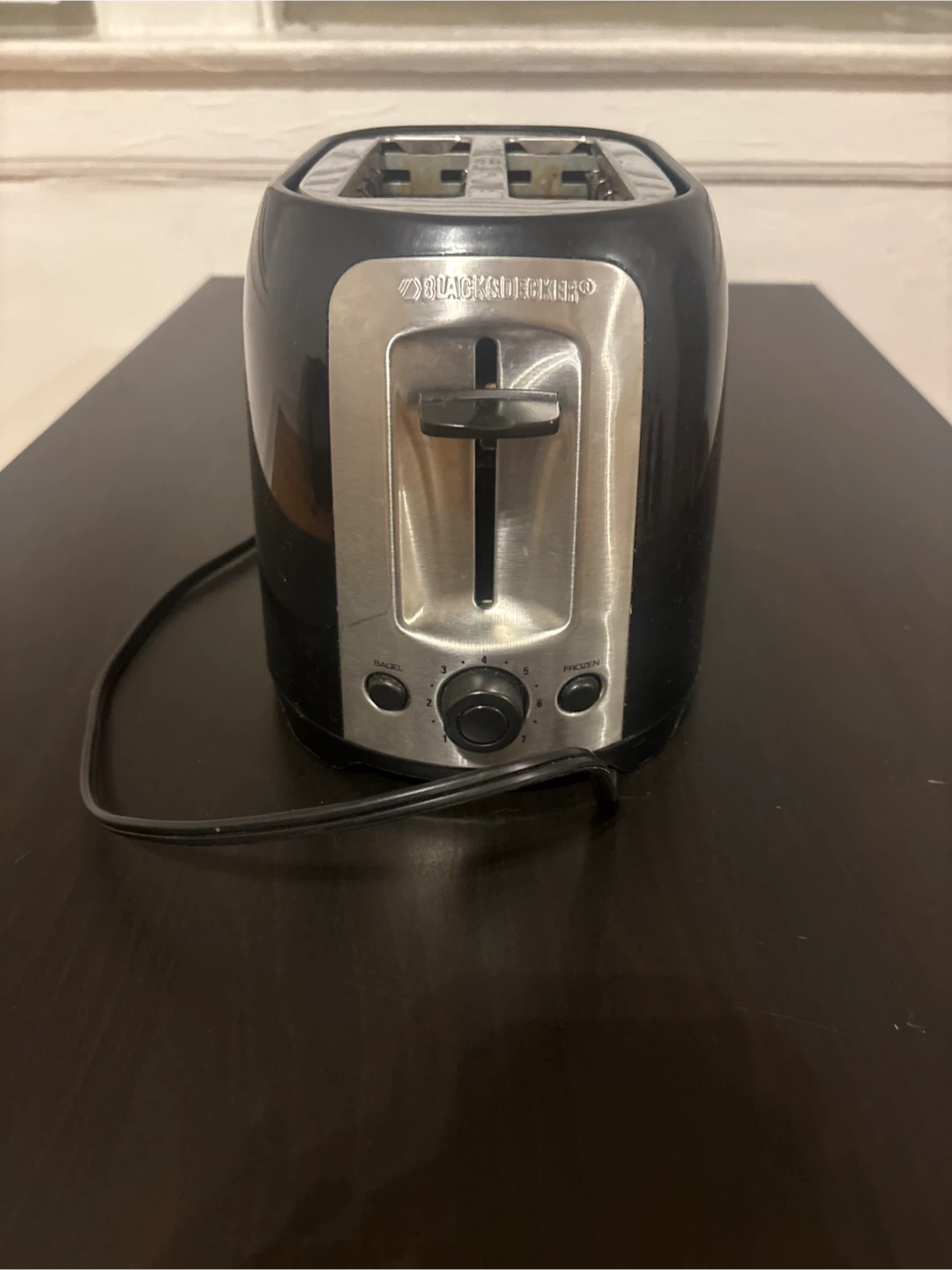 Buy & SellBlack+Decker ToasterBlack+Decker ToasterFreeGiving away a Black+Decker toaster. It's in used condition, as you can see in the photos, but works perfectly well!ConditionGoodBrandBlack+Decker1 chats·0 favorites·28 viewsSELLERverifiedMichelleRavenswood1144 reviewsWHERE TO MEETCheck Location