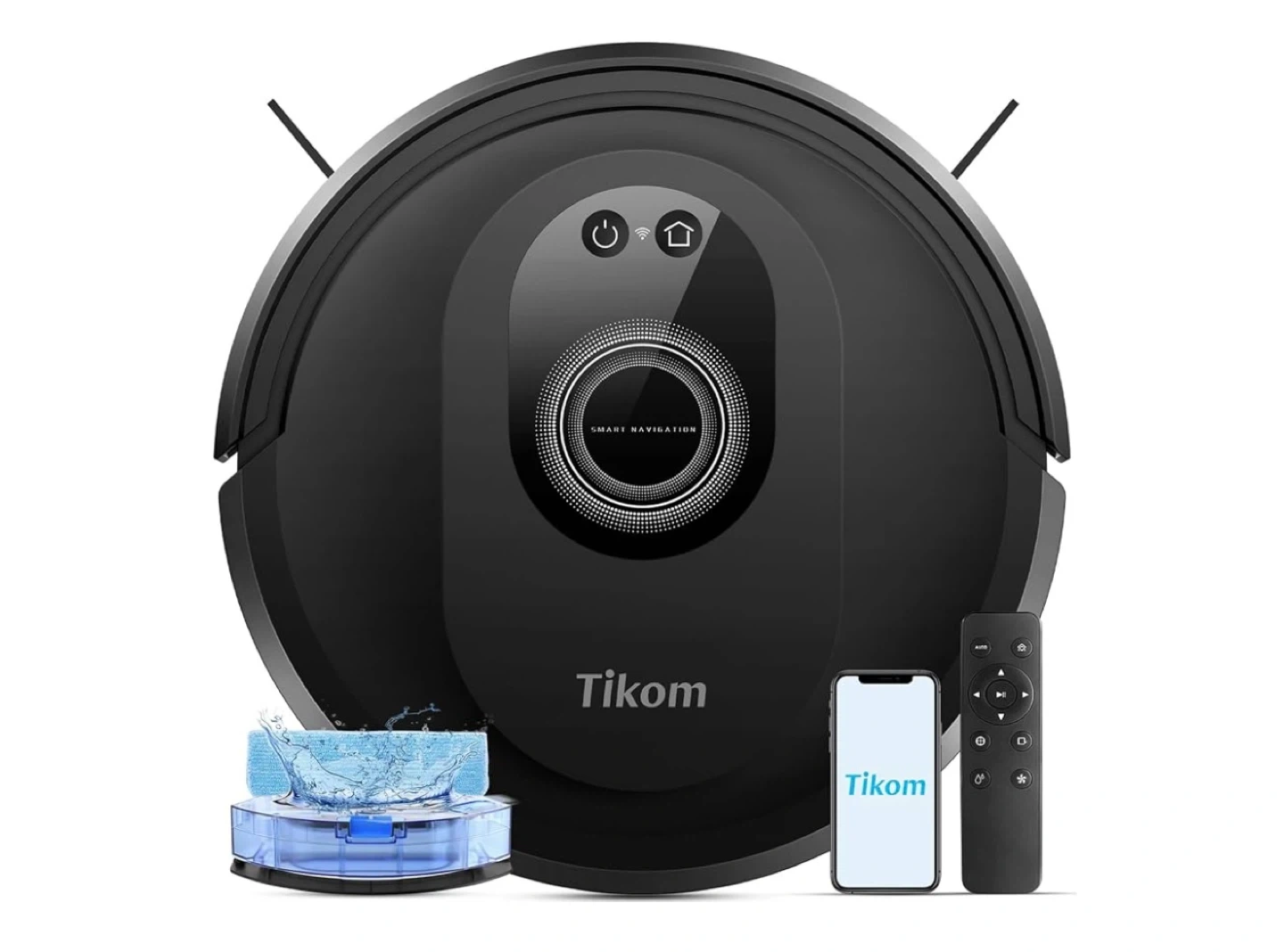 46Selling a Tikom robot vacuum cleaner! It has a 2-in-1 compact design for vacuuming and mopping. It comes with a 300 ml water tank and a 450 ml dust bin. It also features 5000Pa strong suction, and can be controlled with an app