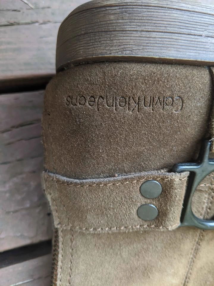 They were a gift that I never wore. Not my style. These are Calvin Klein men's boots size 10 Palmer Suede - Dark Beige