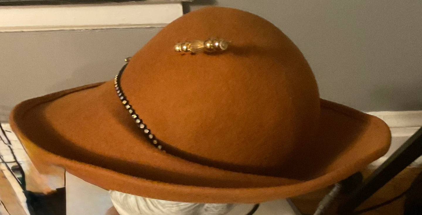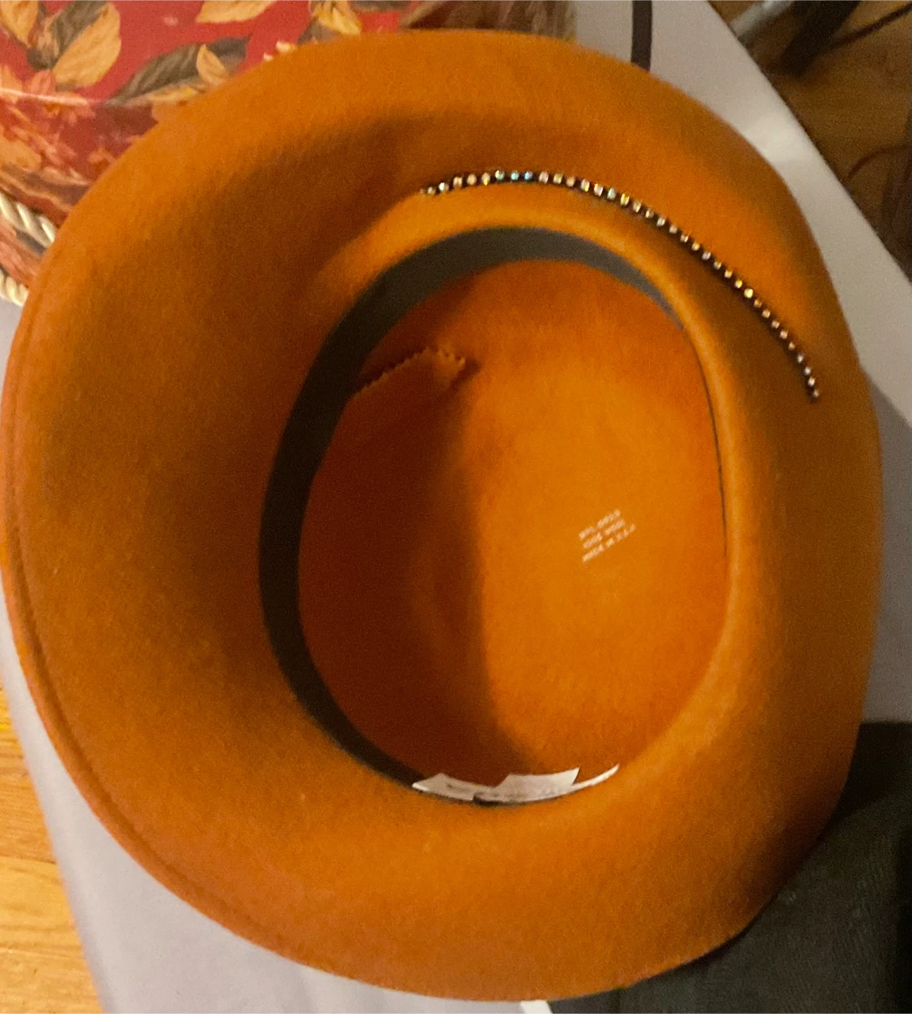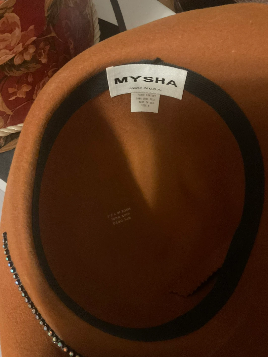 Selling a stylish vintage Mysha hat made from 100% wool felt! It's a beautiful, rich brown color and size 6. The hat has a decorative beaded band and a unique pin accent, adding a touch of elegance to any outfit