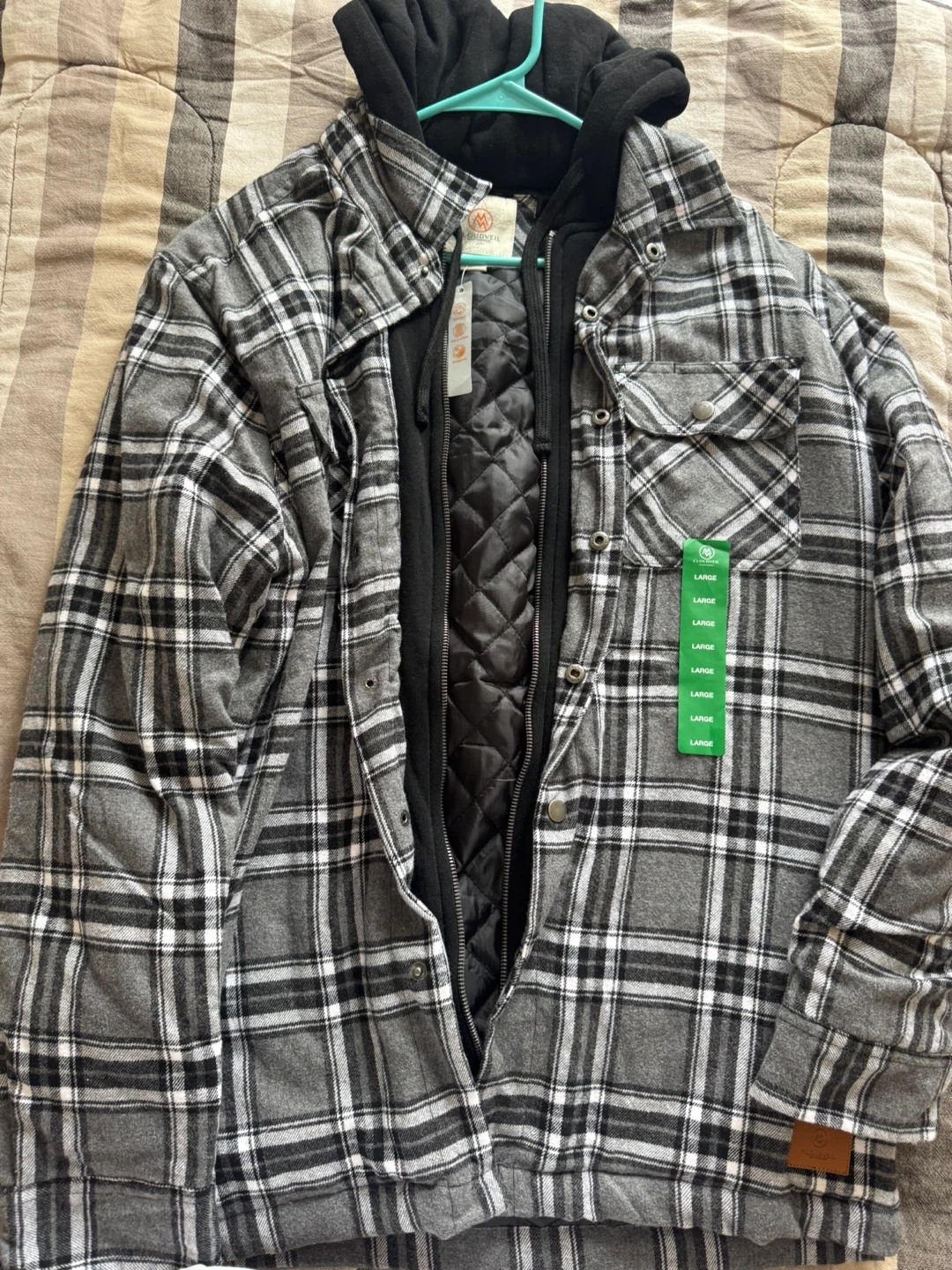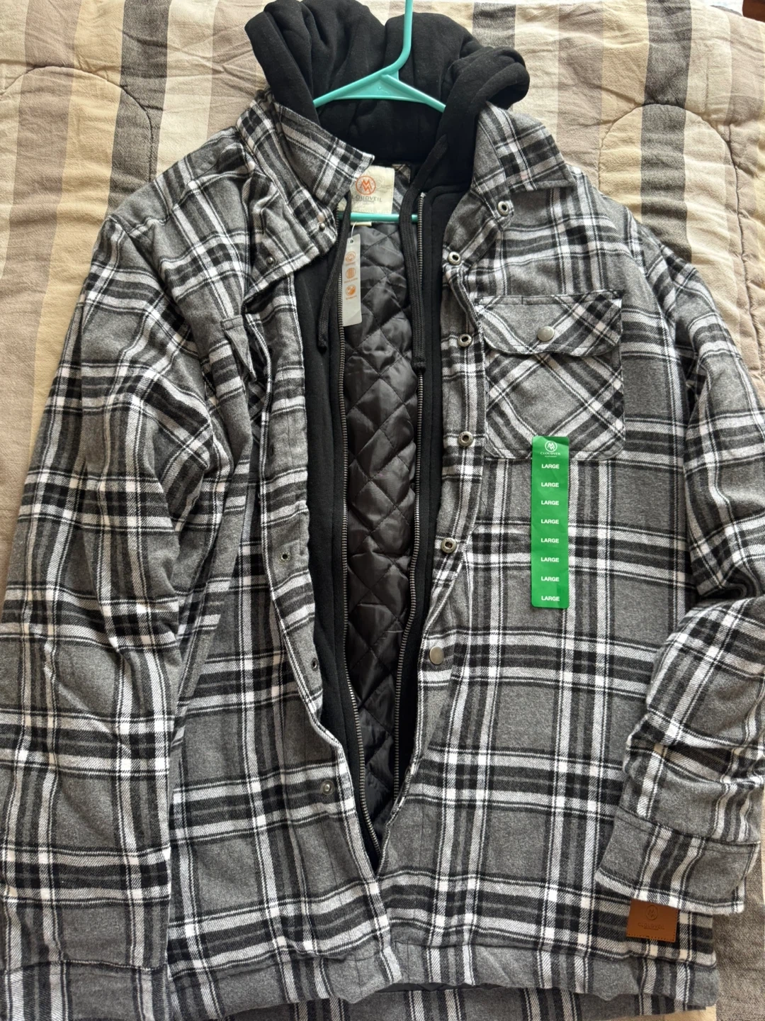 130Weatherproof Vintage plaid jacket in size large! It's a stylish and warm jacket with a black quilted lining and a hood. Perfect for layering during colder weather. Feel free to ask any questions!