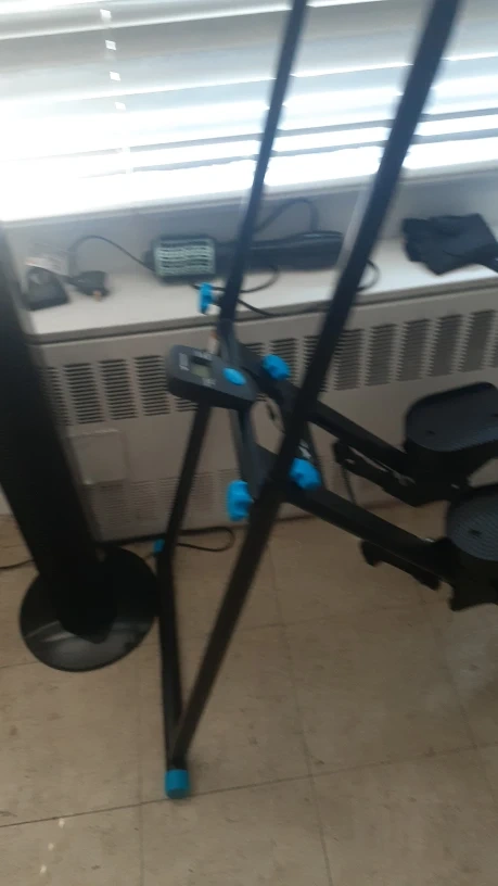 I'm selling this exercise machine. It is black with blue accents.