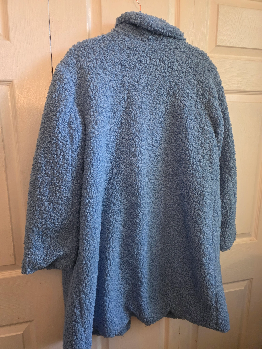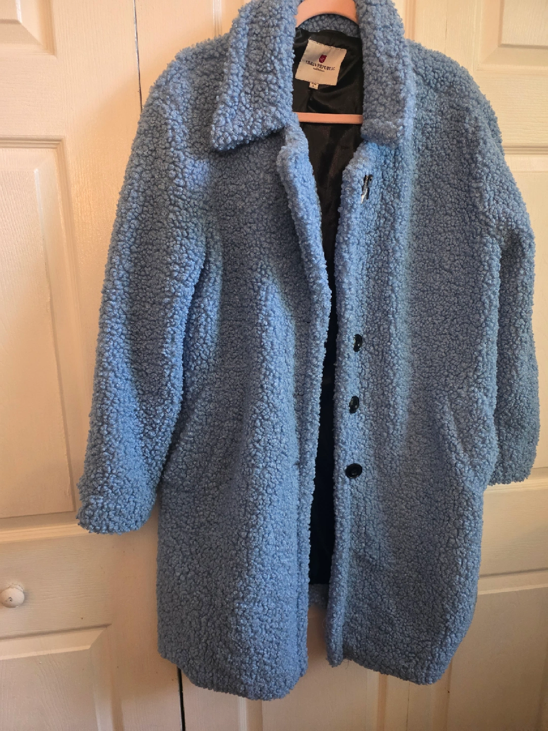 Here's a cozy Halo Republic teddy coat in a lovely shade of blue! It's perfect for adding a touch of warmth and style to your wardrobe. The soft, plush material makes it super comfortable to wear. It's in great condition and ready for a new home!