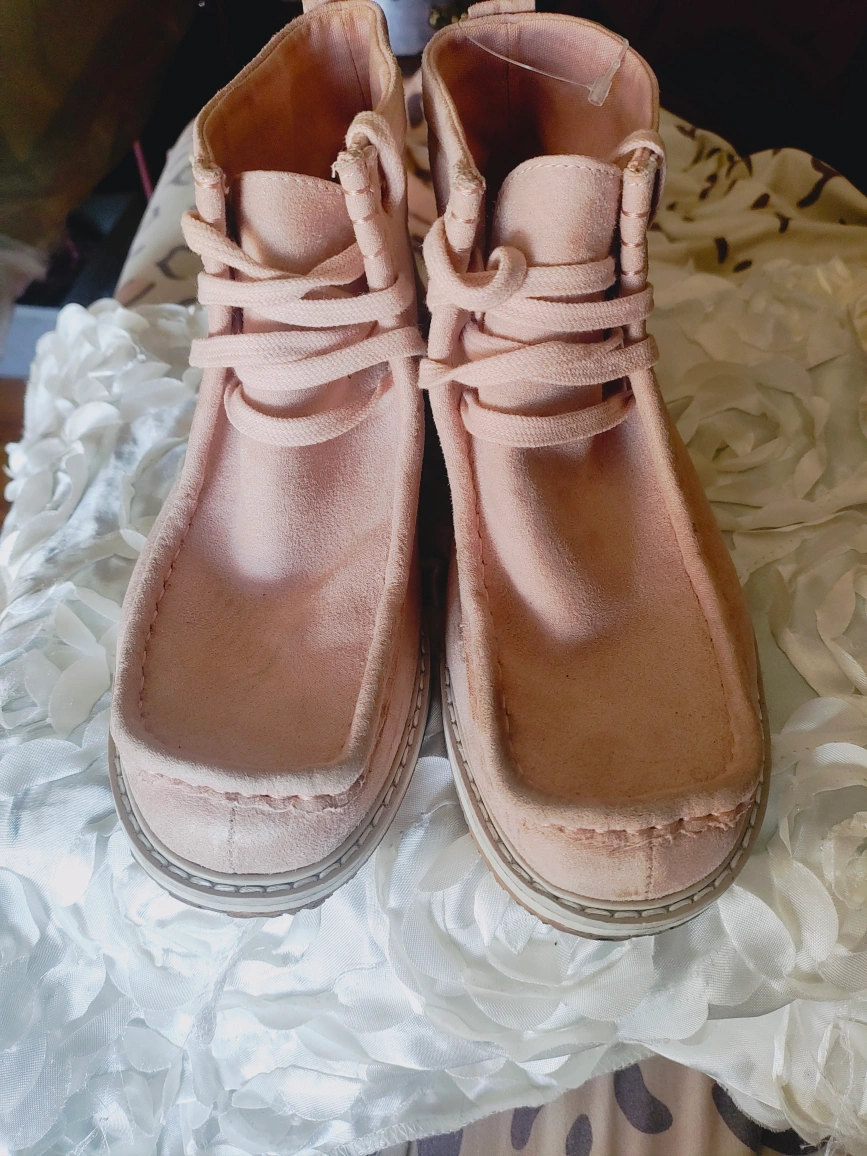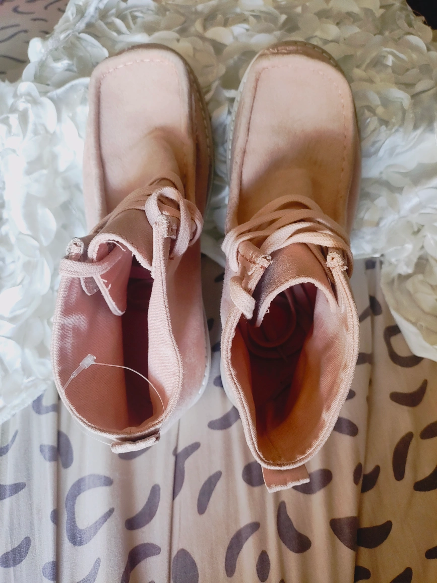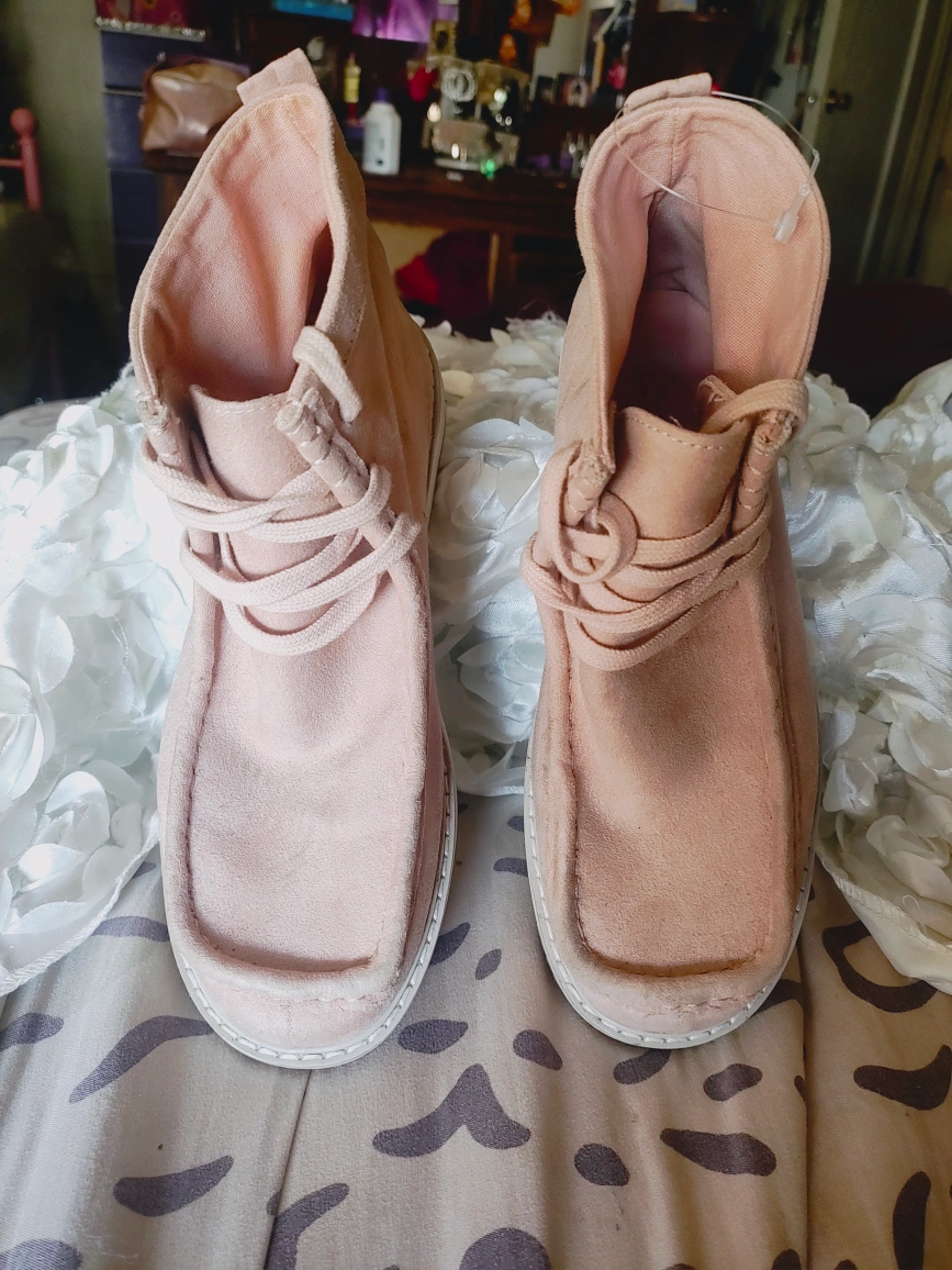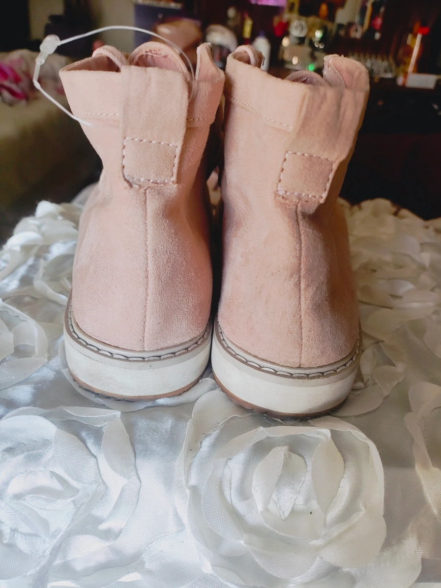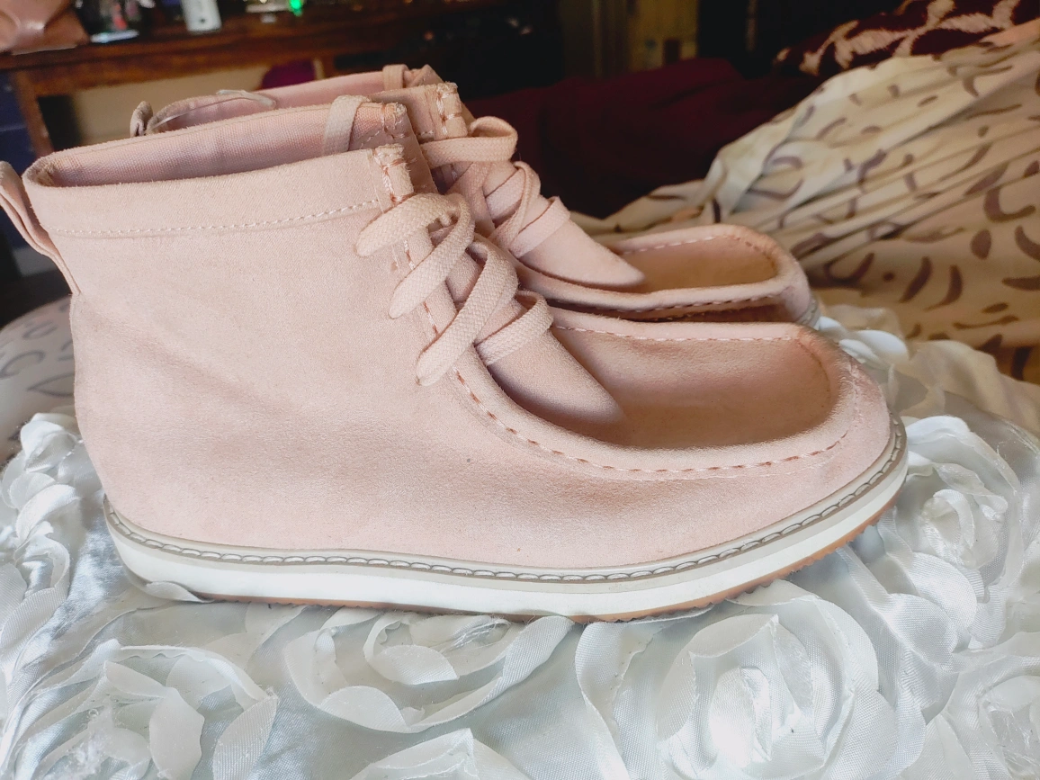 These adorable pink suede ankle Shoes Walabees version great for school and with school uniforms. There used in great condition. They feature a comfortable sole and a stylish lace-up design. Perfect for adding a touch of sweetness to any outfit