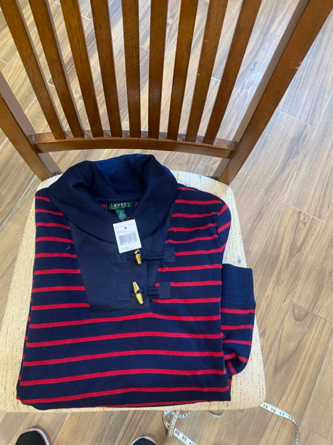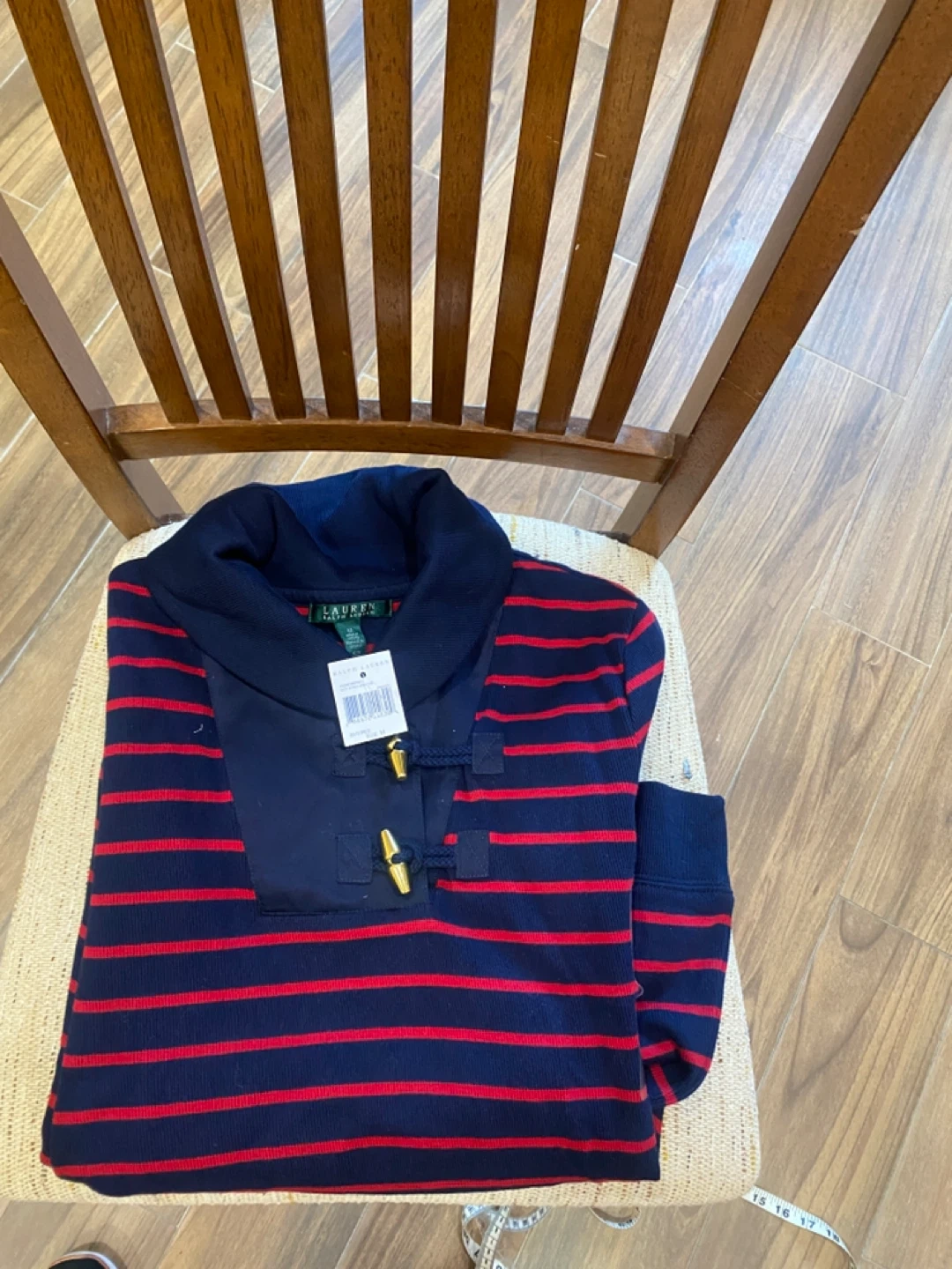 70Here's a Lauren Ralph Lauren pullover in a red and navy striped design! It's in great condition and ready for a new home. Perfect for adding a touch of classic style to your wardrobe Brand new Pick up in Bensonhurst bklyn Text 347-366-4713 Size m