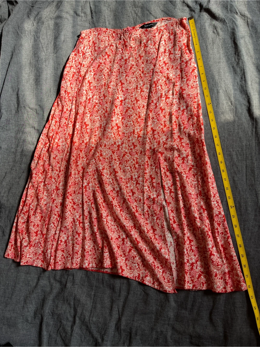 94Lovely New Look midi skirt, perfect for summer, floaty and light, zipper at the back, one slit on the side not too big. A line, Floral pattern I’m normally a size large, it fits me great, I just don’t wear skirts all that much hence selling.