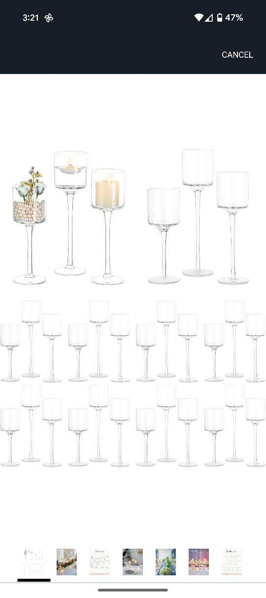 Selling a set of 30 INWEDER candle holders! They are perfect for adding a touch of elegance to any event or home decor. Each holder is crafted with clear glass and stands at varying heights, adding visual interest to your table setting. They are great for weddings, parties, or just to create a cozy atmosphere at home