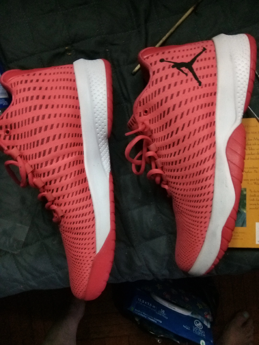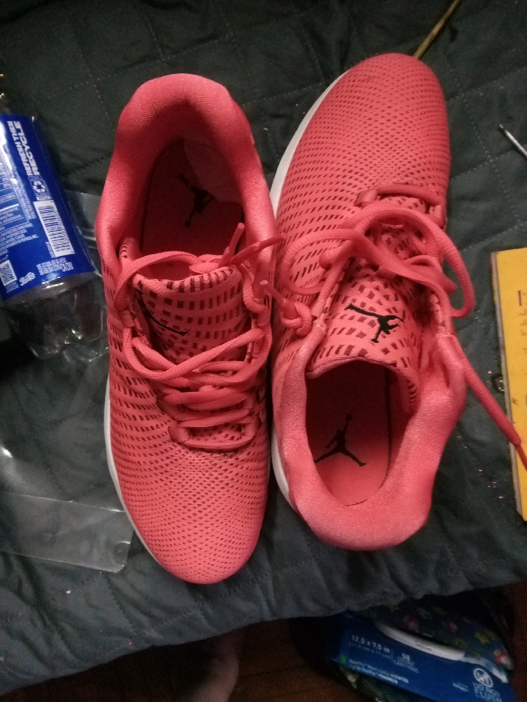 Selling a pair of Jordan Fly 89 sneakers in red! These are a US size 9.5. They have the iconic Jordan logo and a stylish design. Perfect for casual wear or workouts! ACTUAL SNEAKER SIZE IS US mENS 10.5 for sum reason I wasn't allowed to correct the size on the designated area??