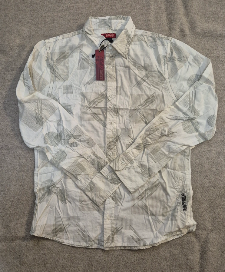 Here's a Buffalo David Bitton shirt with a cool geometric pattern! It's in great condition and ready for a new home