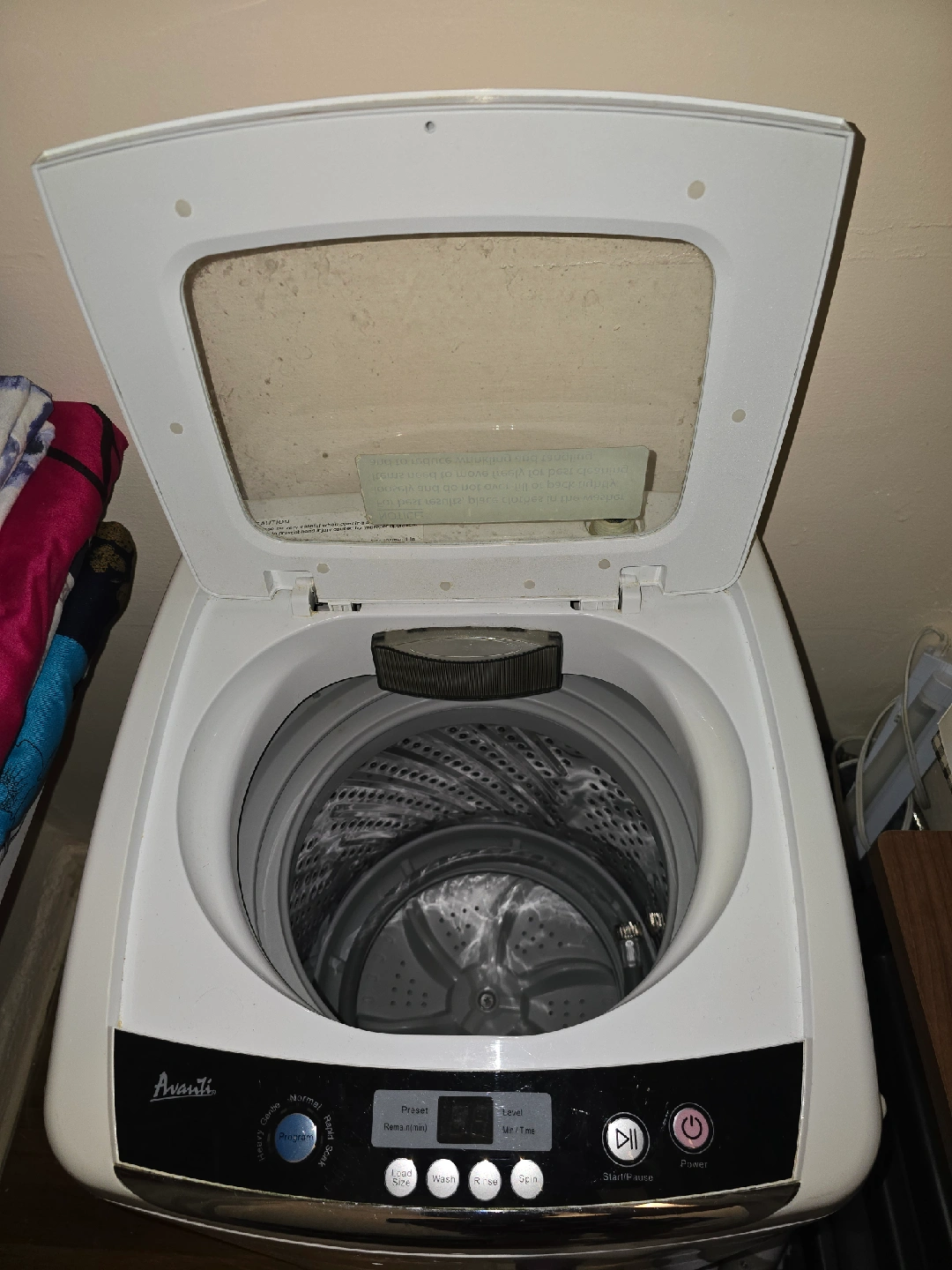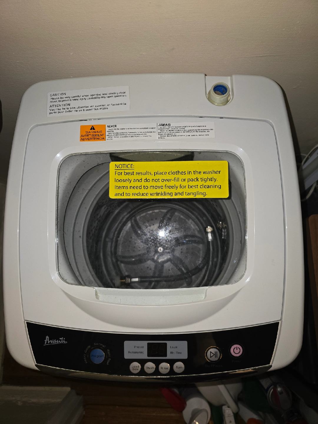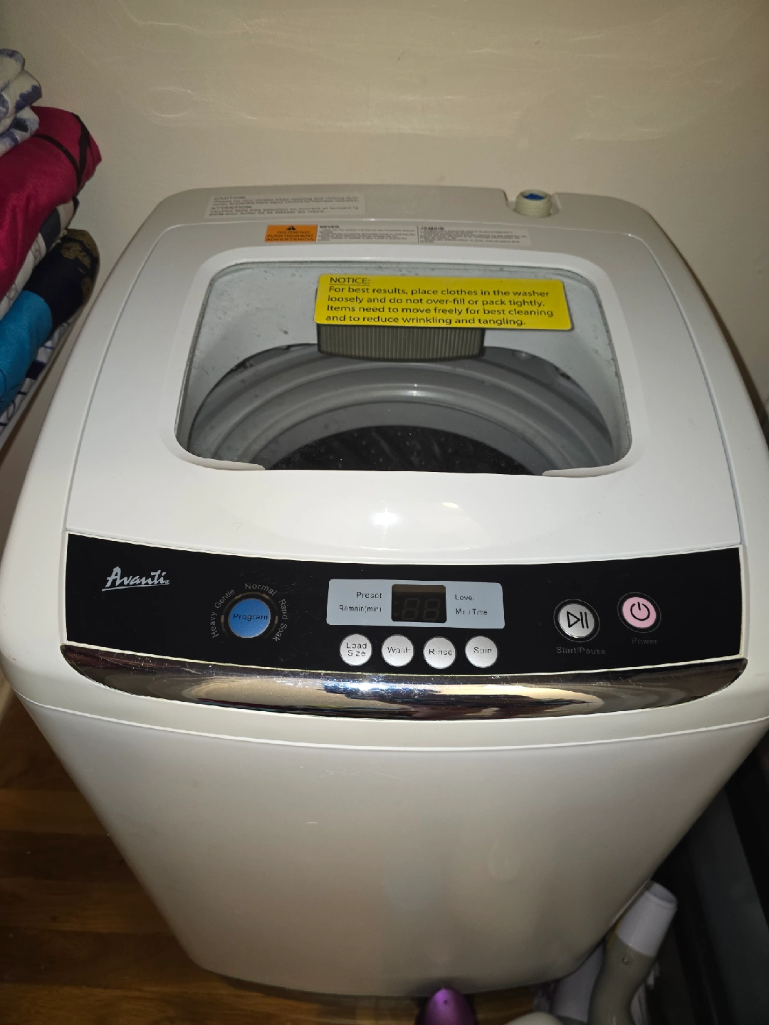 Selling an Avanti portable washing machine in white. It's in good condition and ready to use. Great for apartments or small spaces