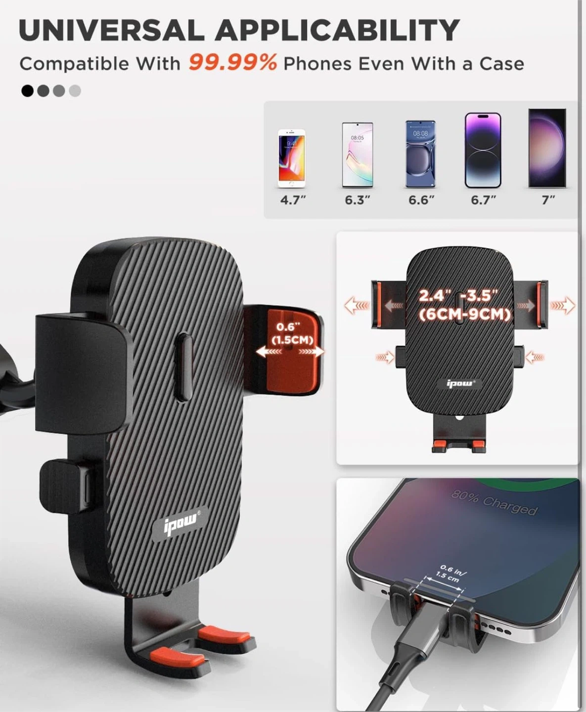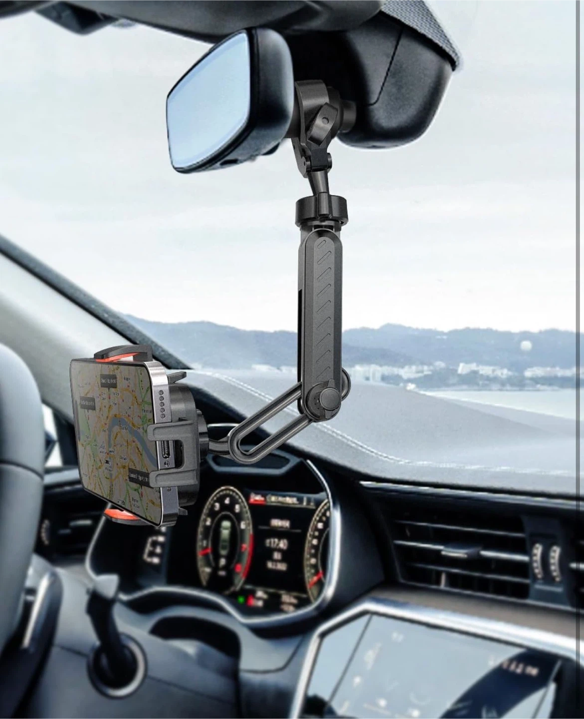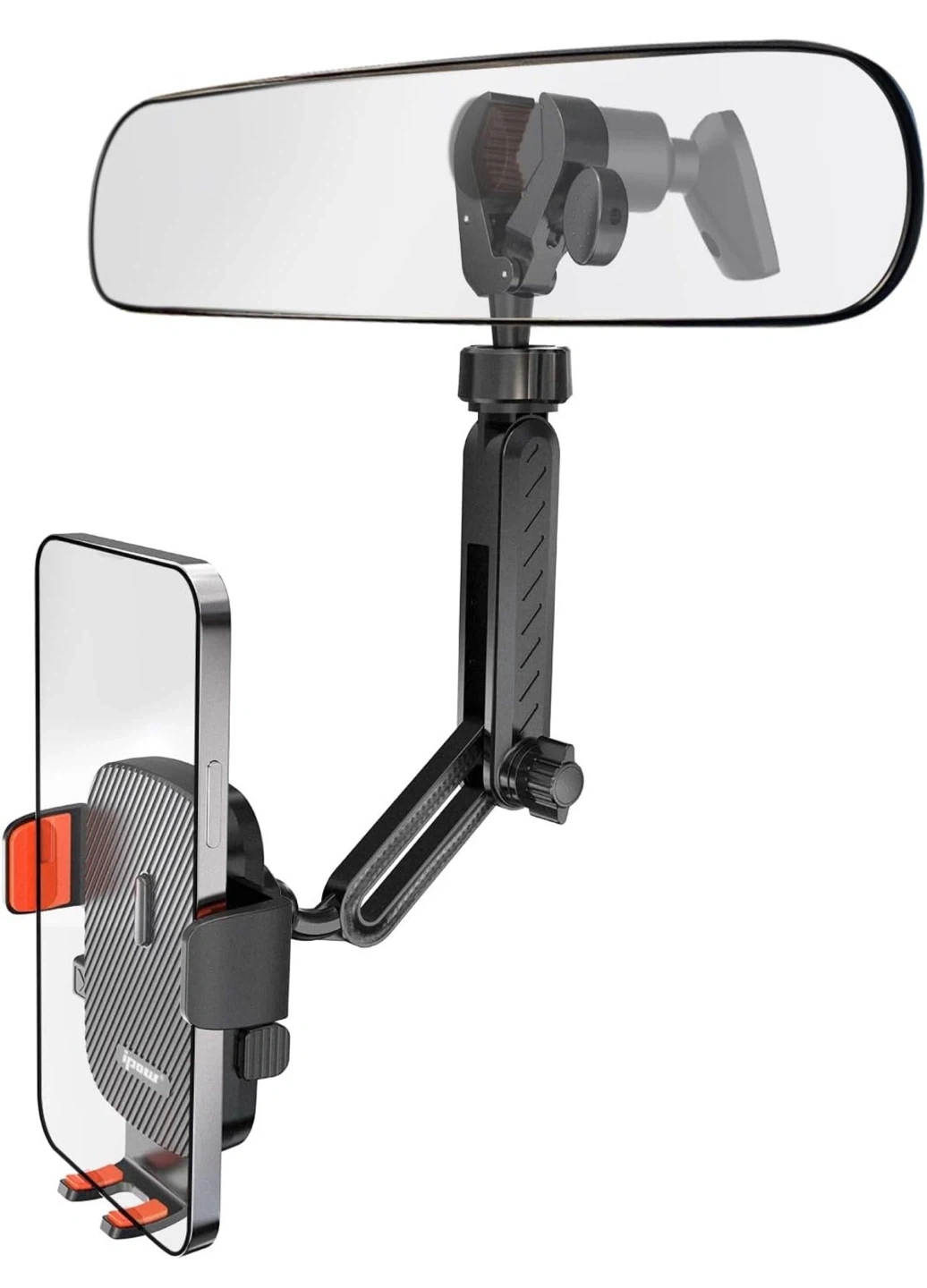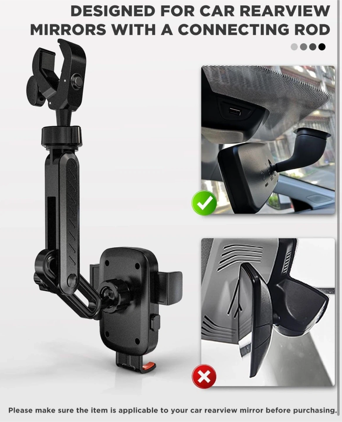 158Rearview Mirror Phone Holder for Car 360°Rotatable and Retractable, Auto Clamp Car Phone Mount with Multi-Angle Adjustment Compatible with All 4-7 Inch Phones