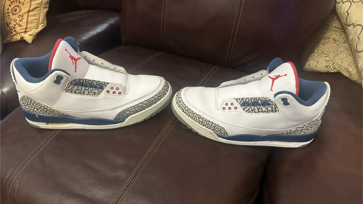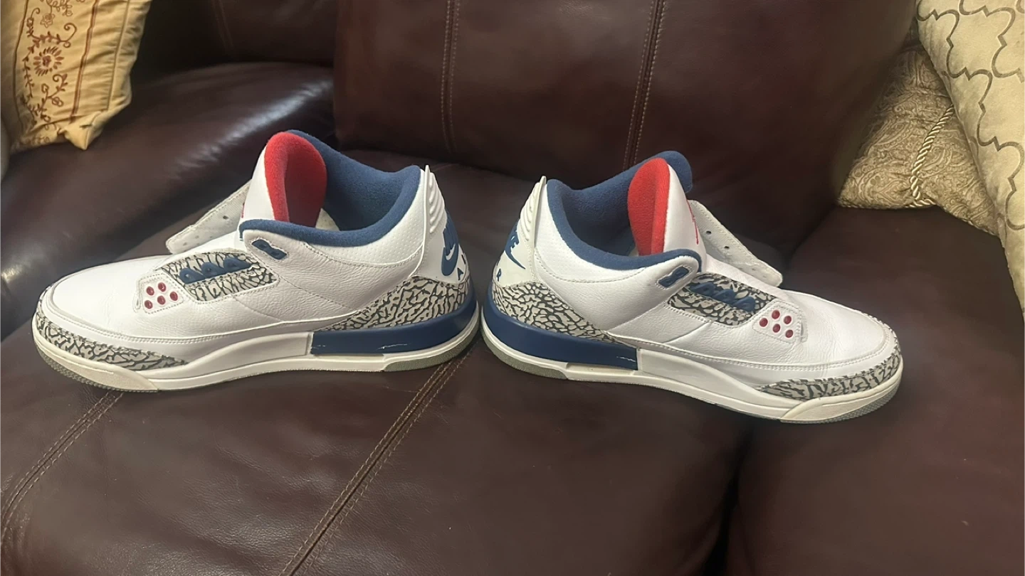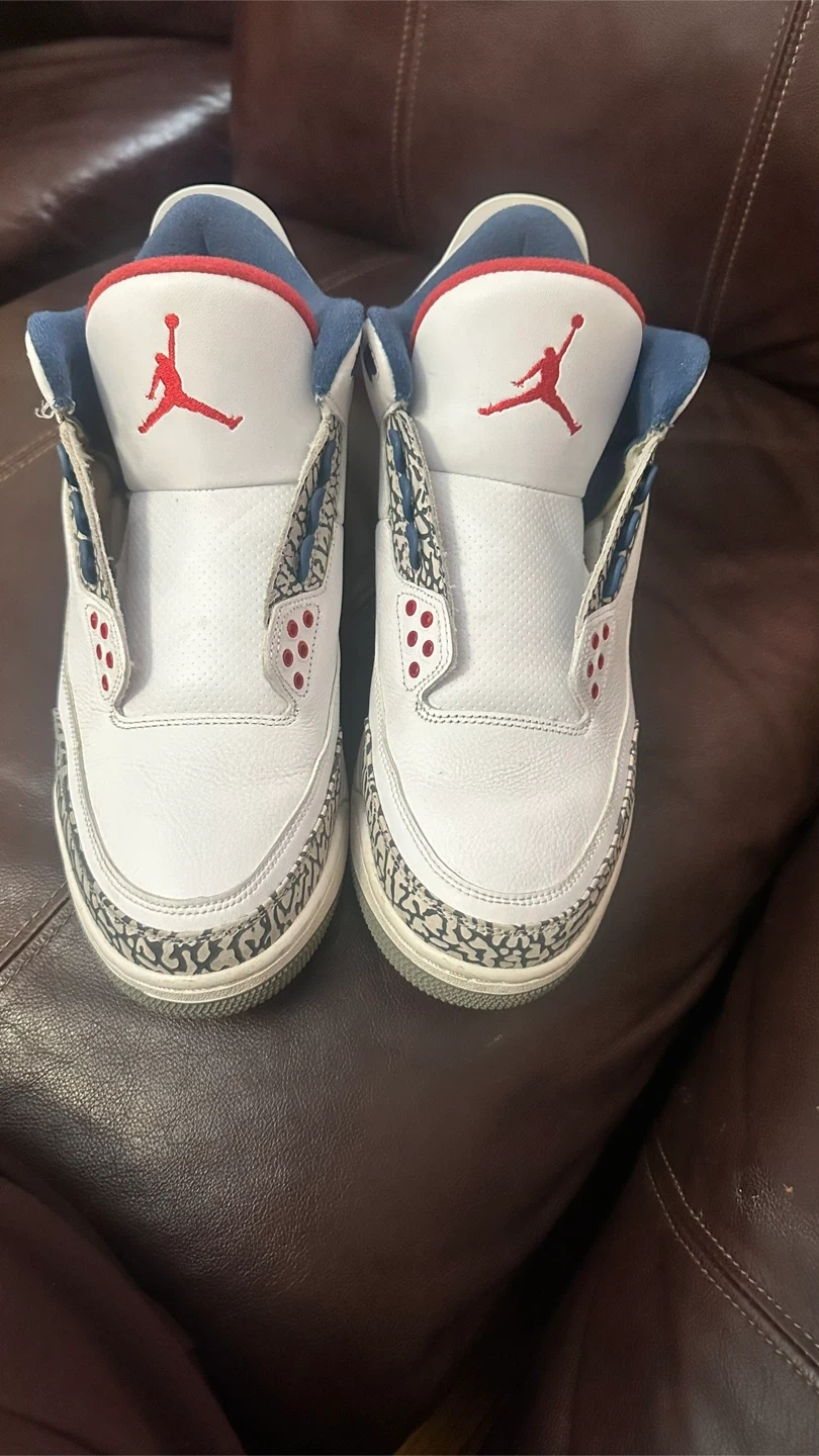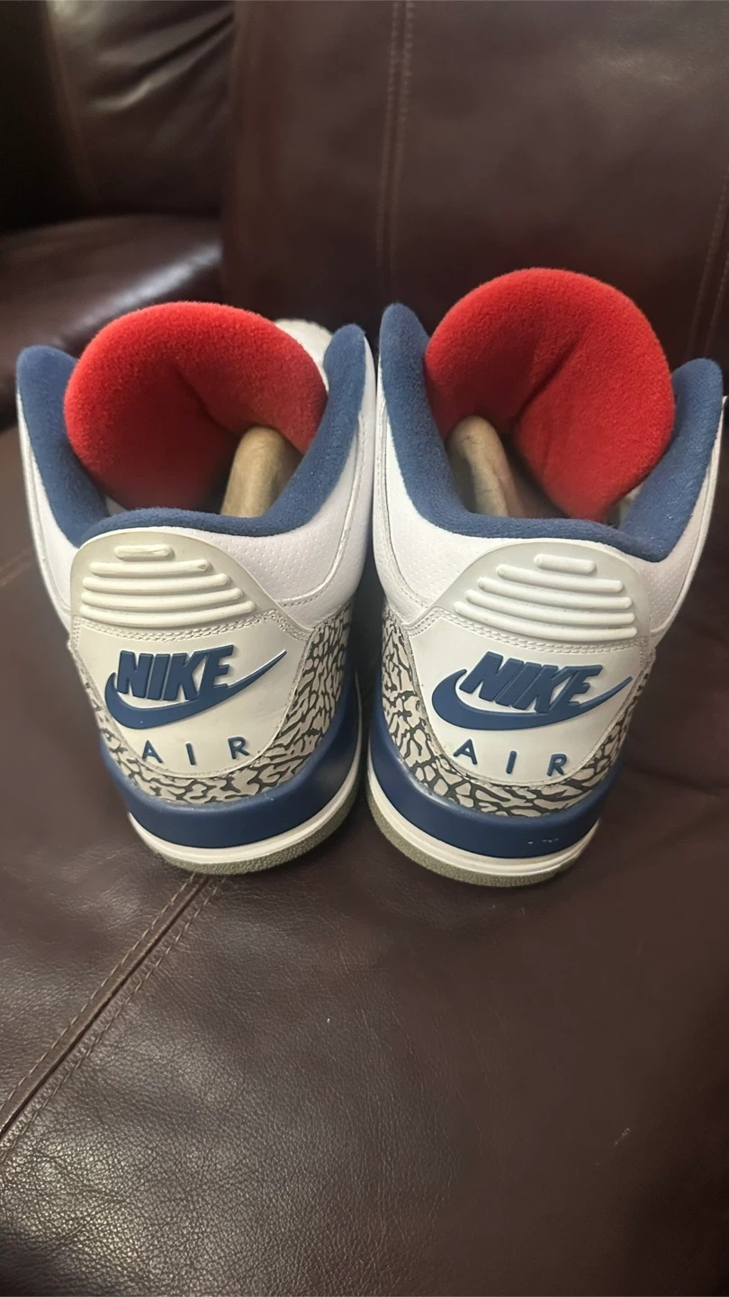 Selling a pair of Nike Air Jordan 3 Retro in the True Blue colorway. They show some signs of wear but are still in good condition! Great for any sneaker enthusiast or someone looking for a stylish pair of shoes