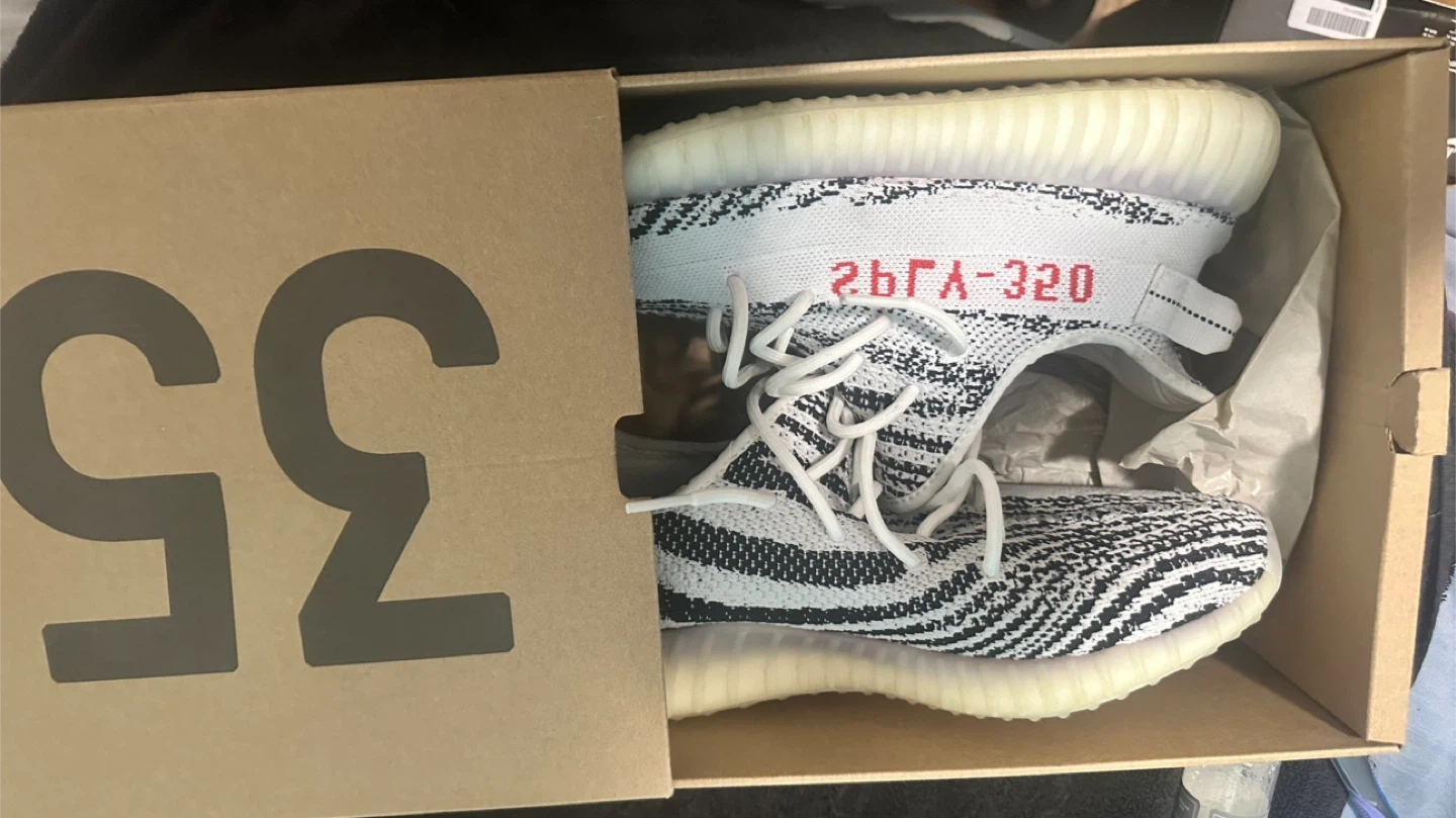 Selling a pair of Adidas Yeezy Boost 350 V2 in the Zebra colorway! They come with the original box.