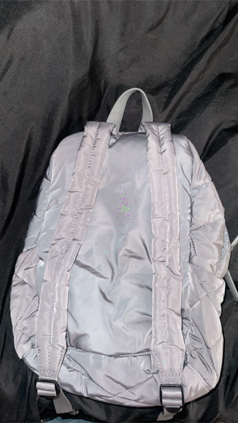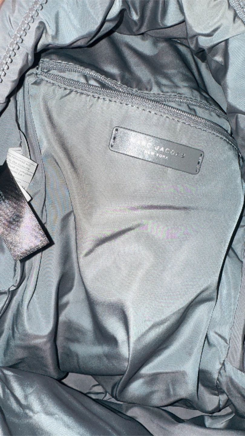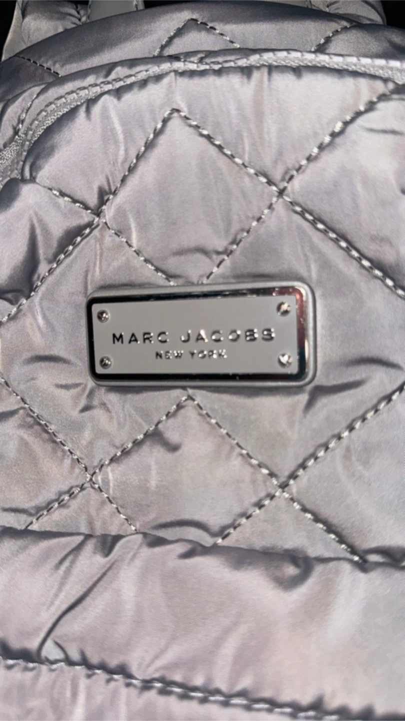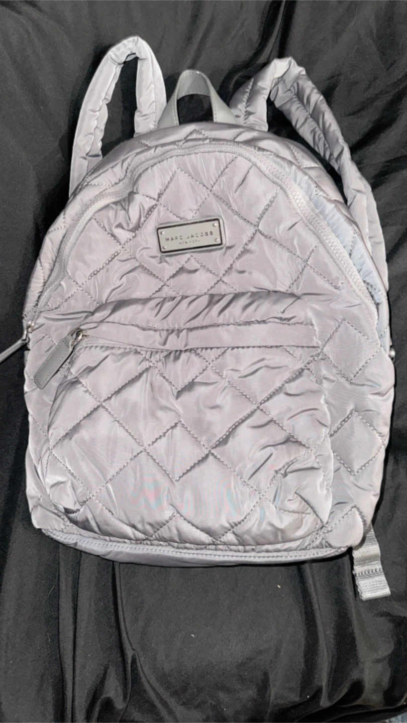 This is a Marc Jacobs quilted nylon mini backpack in a stylish gray color. It's perfect for carrying your essentials in a fashionable and compact way. The quilted design adds a touch of elegance, and the mini size makes it ideal for everyday use Never Used