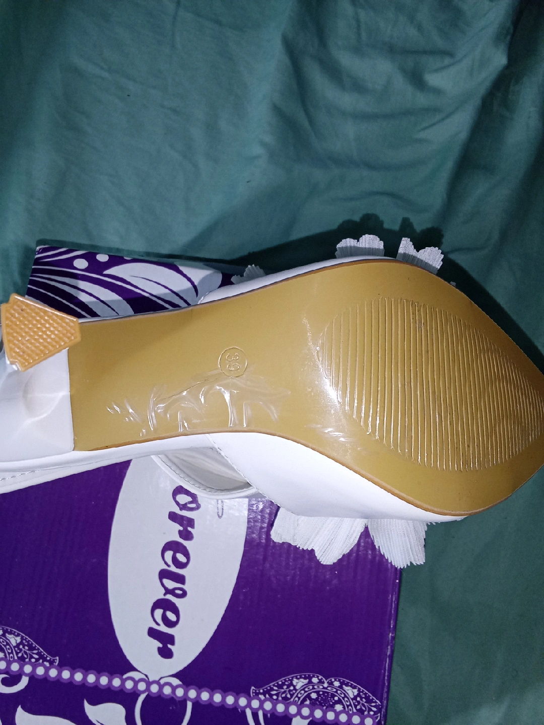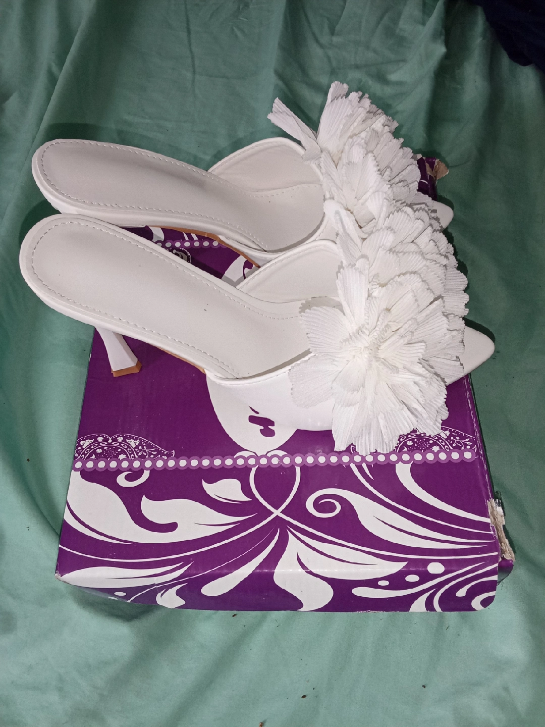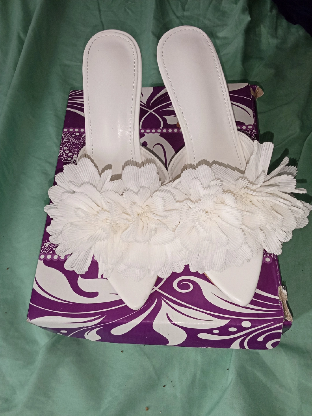 These white floral heels are super cute and perfect for a special occasion! They are a size 38, which is about a US size 8. Comes with the original box!