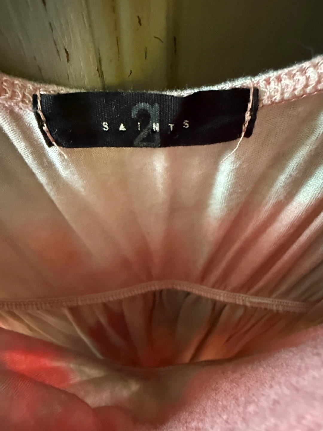 Selling a cute maxi dress from 2 Saints! It's a beautiful tie-dye pattern with pink, white, and green shades. Perfect for summer!
