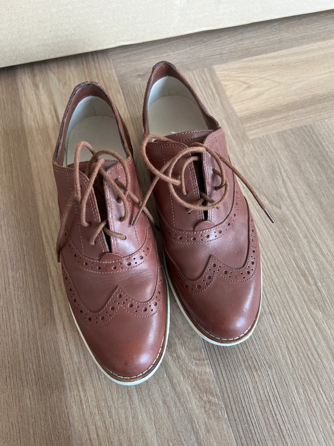 These are a pair of Cole Haan oxfords in a lovely shade of brown leather! They're in great shape and ready for a new home. Perfect for dressing up or down, these shoes are both stylish and comfortable