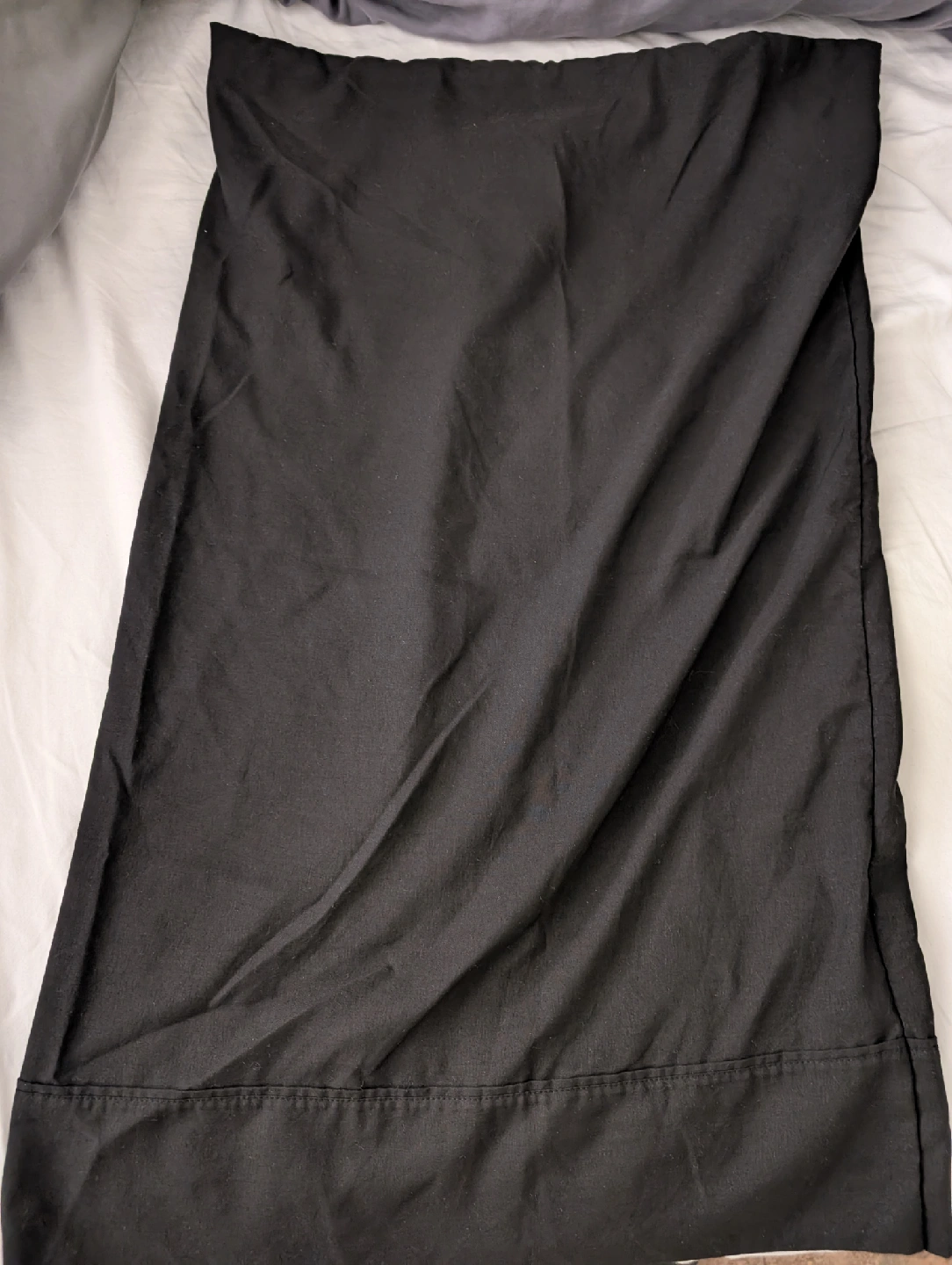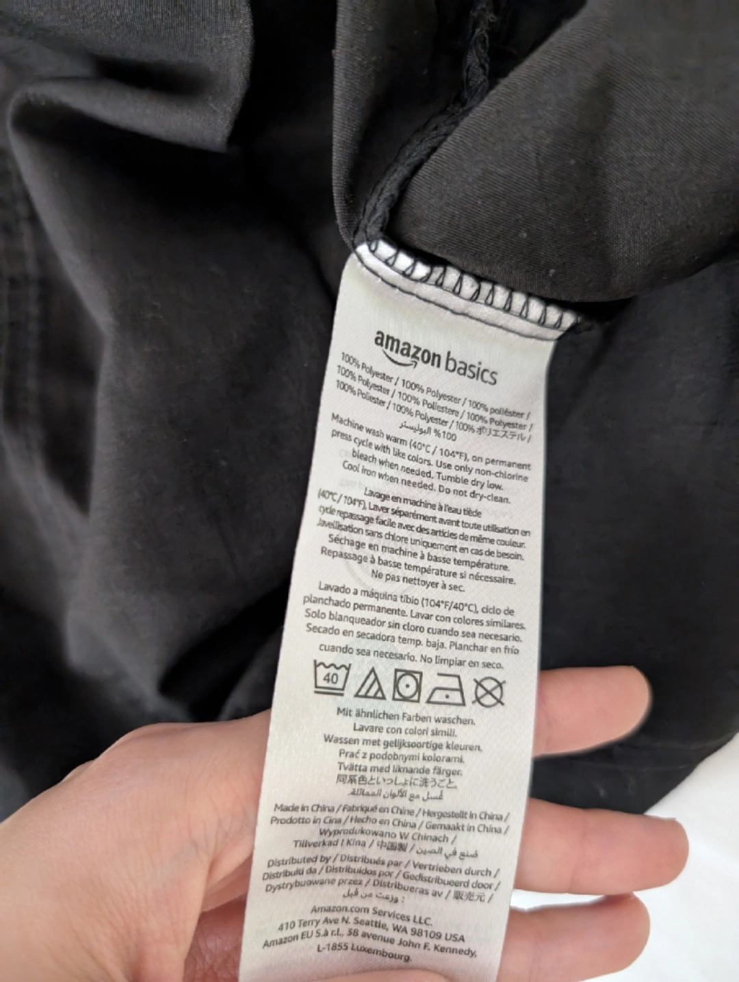 Selling a black pillowcase from Amazon Basics. It's made of 100% polyester. Machine wash cold with like colors and tumble dry on low. It's in great condition!
