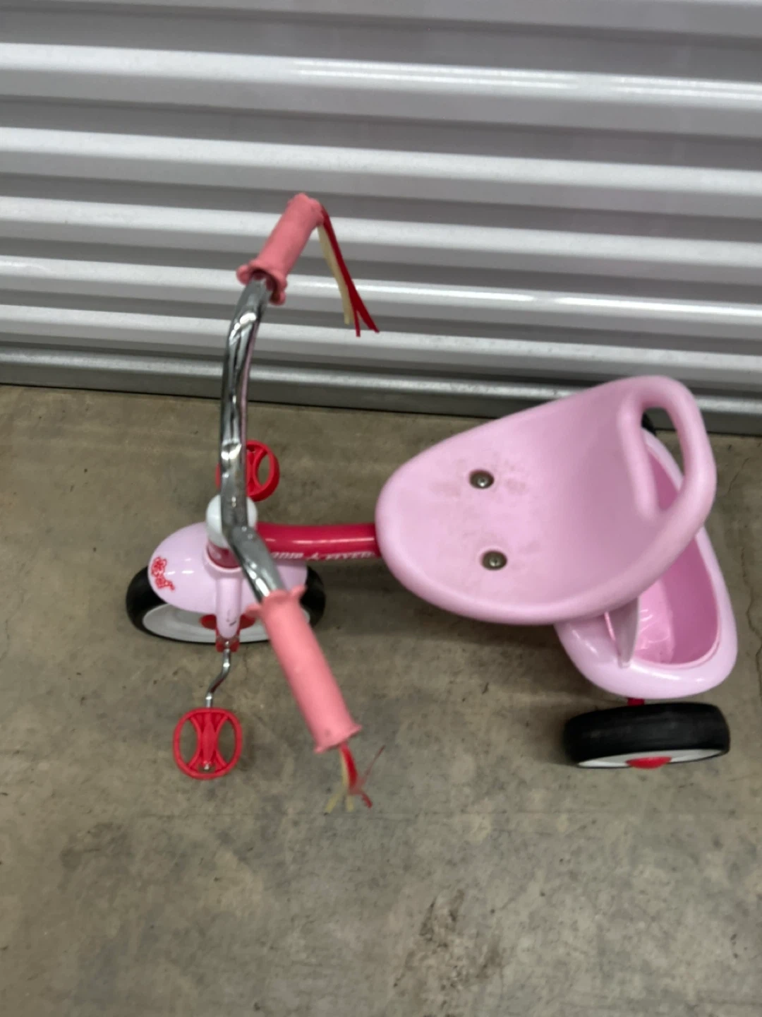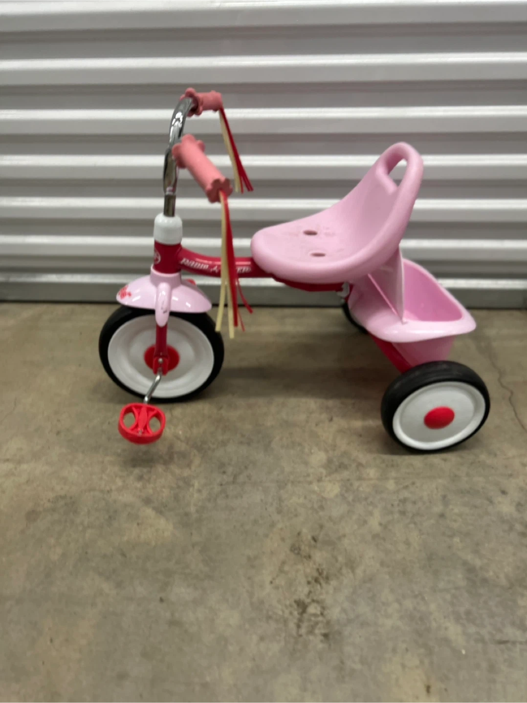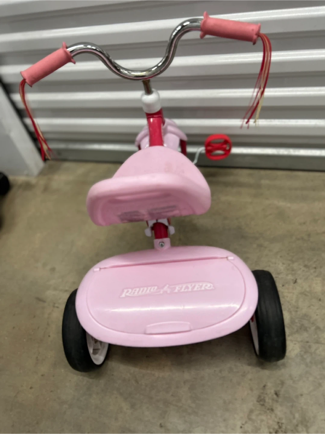 Selling a cute pink Radio Flyer tricycle! It's perfect for toddlers learning to ride. It has a little storage in the back. There's some wear and tear on the handle grips, but otherwise it's in good condition!