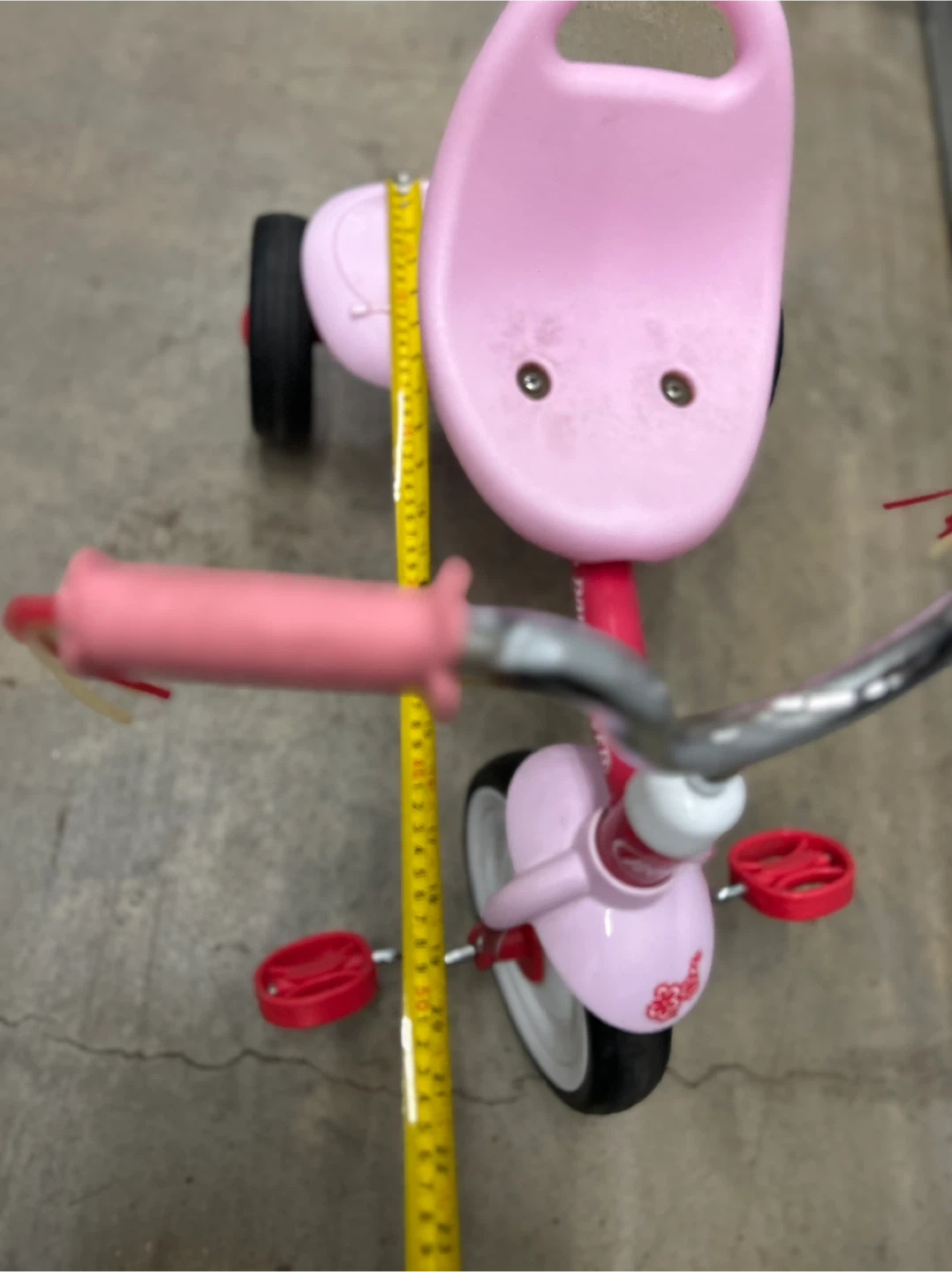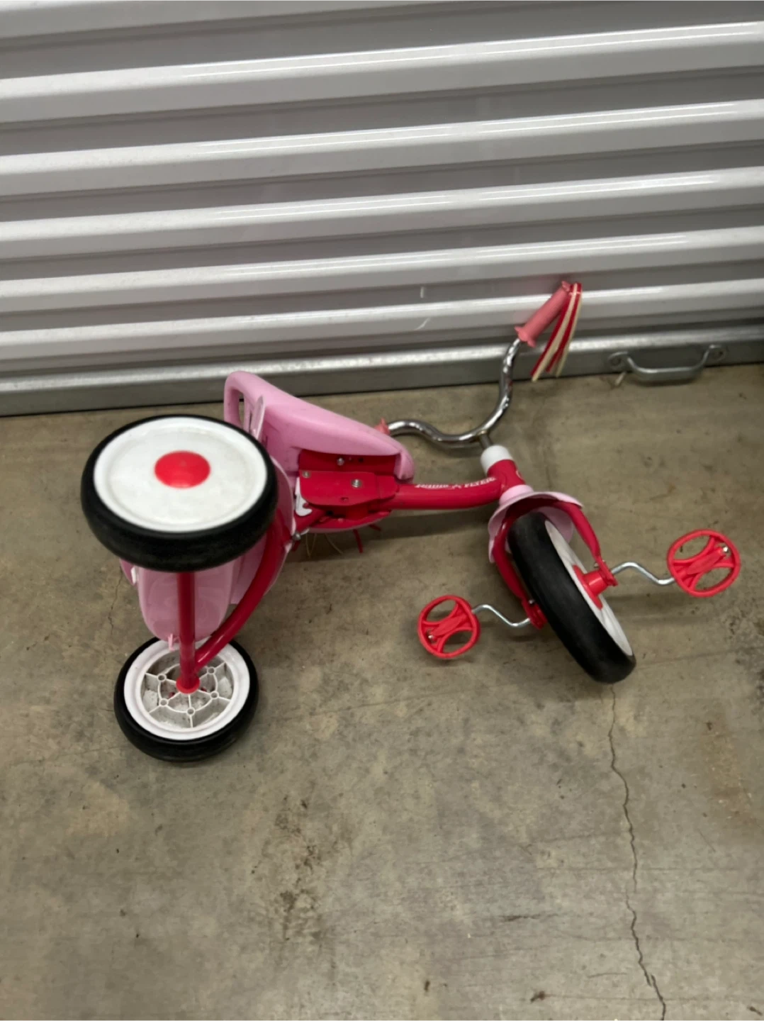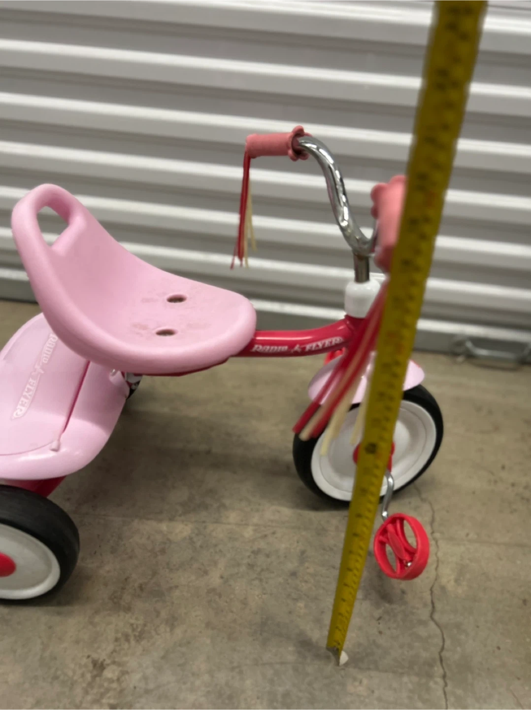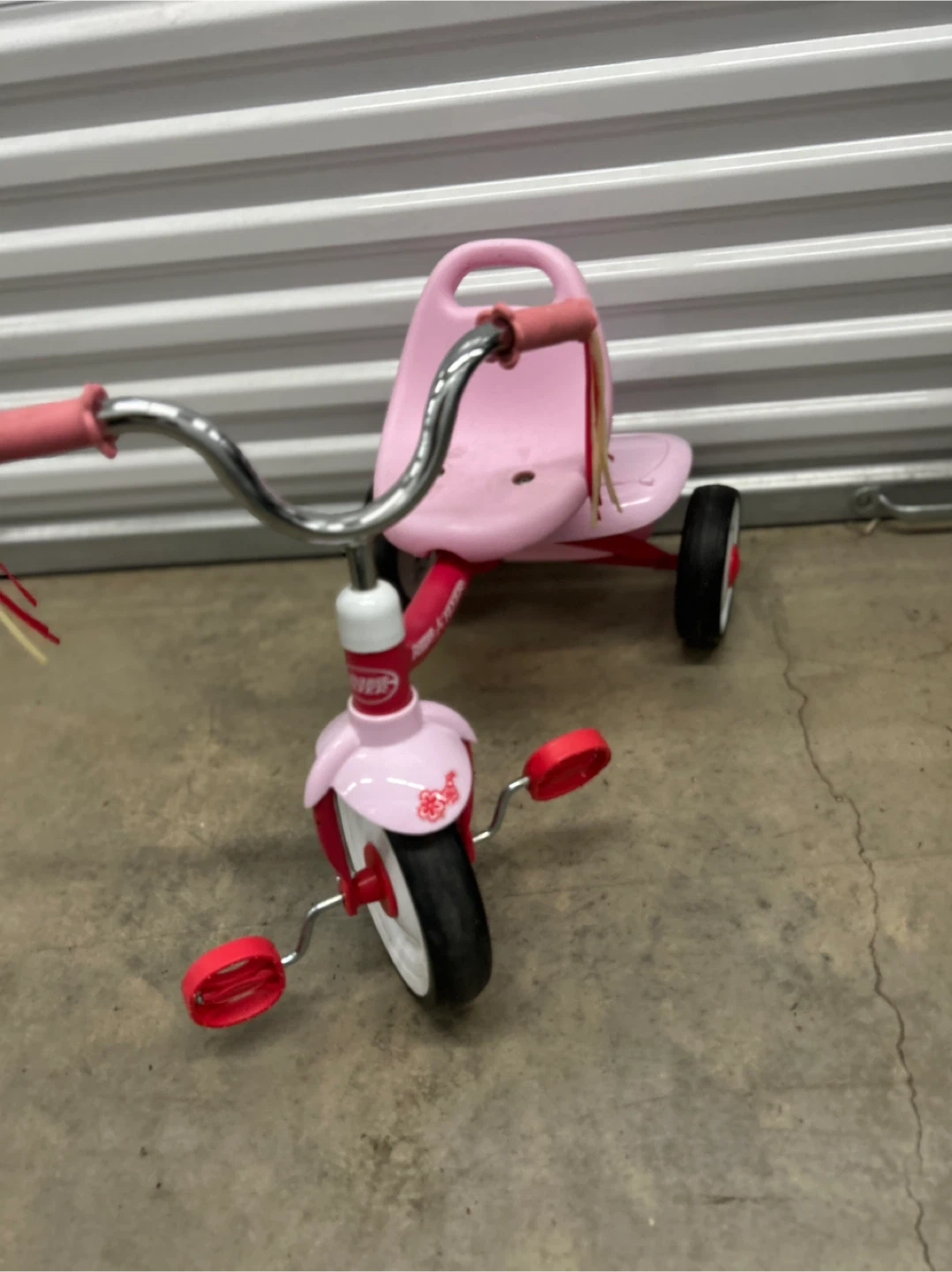 Selling a cute pink Radio Flyer tricycle! It's perfect for toddlers learning to ride. It has a little storage in the back. There's some wear and tear on the handle grips, but otherwise it's in good condition!