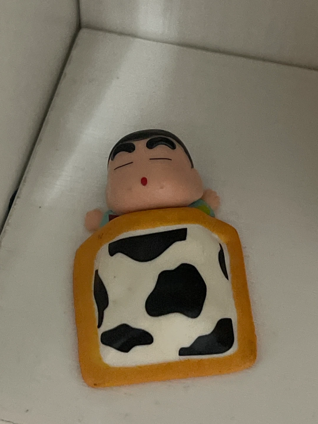 90Here's a cute Shin Chan figure sleeping in a cow-print blanket! It's in great condition and ready for a new home