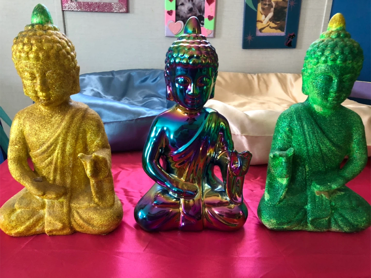 3 beautiful Buddha figurines. Measurements : 10.5” high x 5” at base. Sold together. Cash only. Porch pick up.