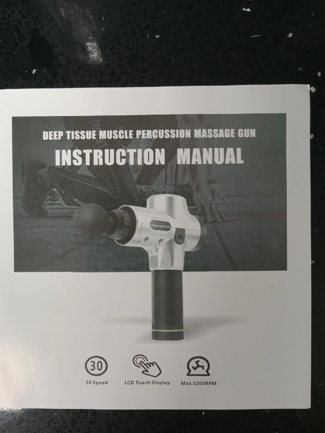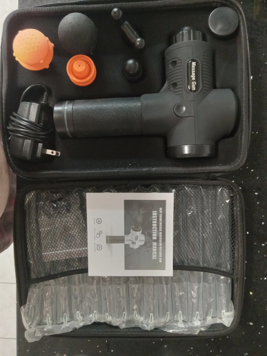32Selling a deep tissue muscle percussion massage gun! It comes with multiple attachments for different massage needs. The instruction manual is included, along with the charger and carrying case. It features 30 speeds and an LCD touch display