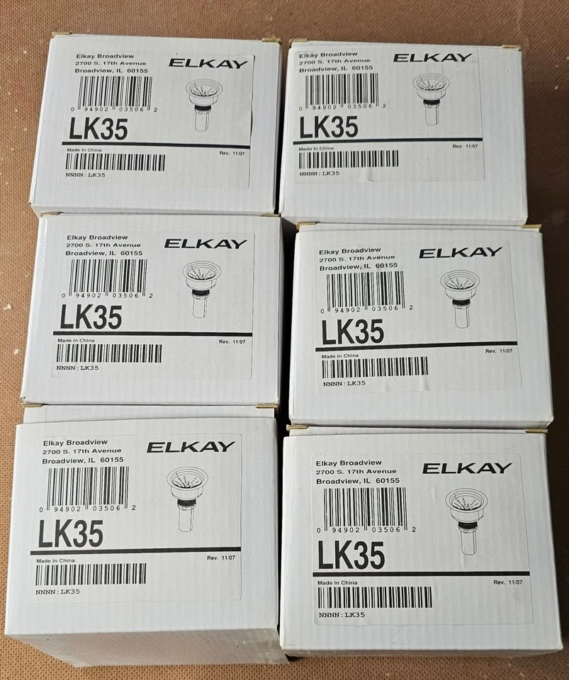Clearing out left over construction job stock. Elkay LK35 Basket strainer. Designed to fit 3-1/2" (89mm) drain opening with an overall flange size of 4-1/2". $25 each or $120 for all 6. OBO.