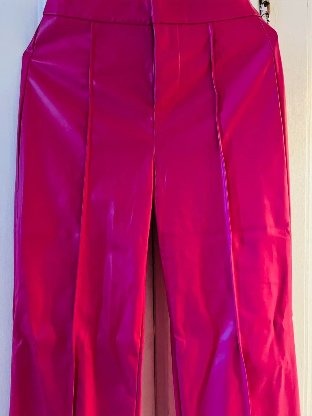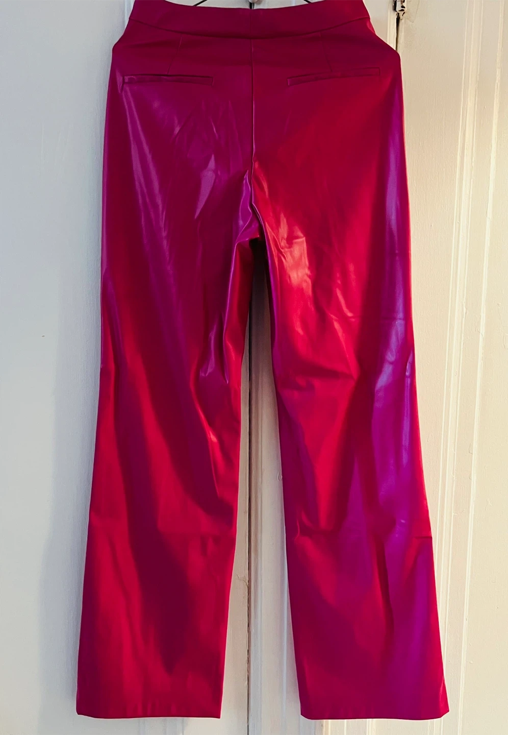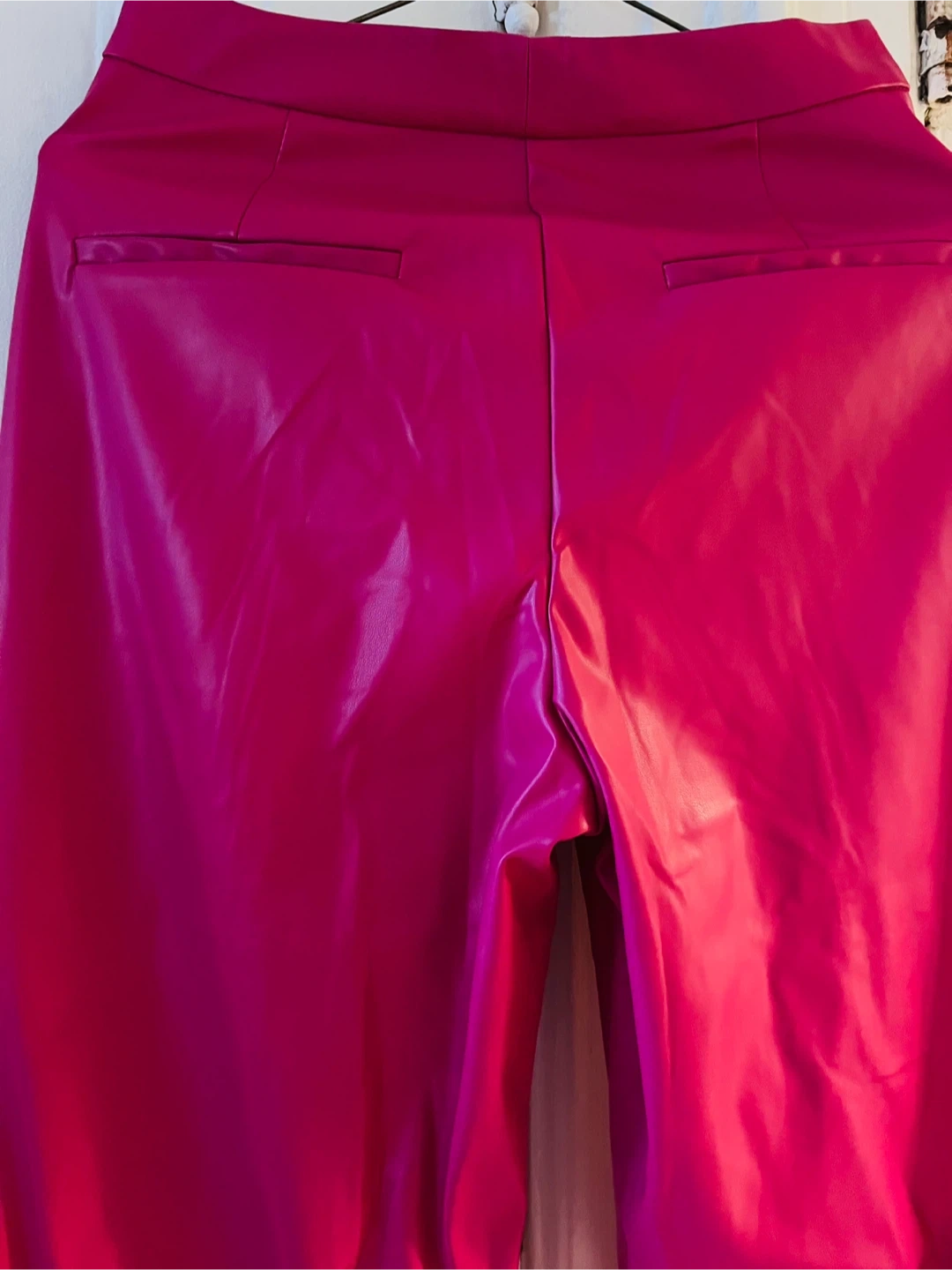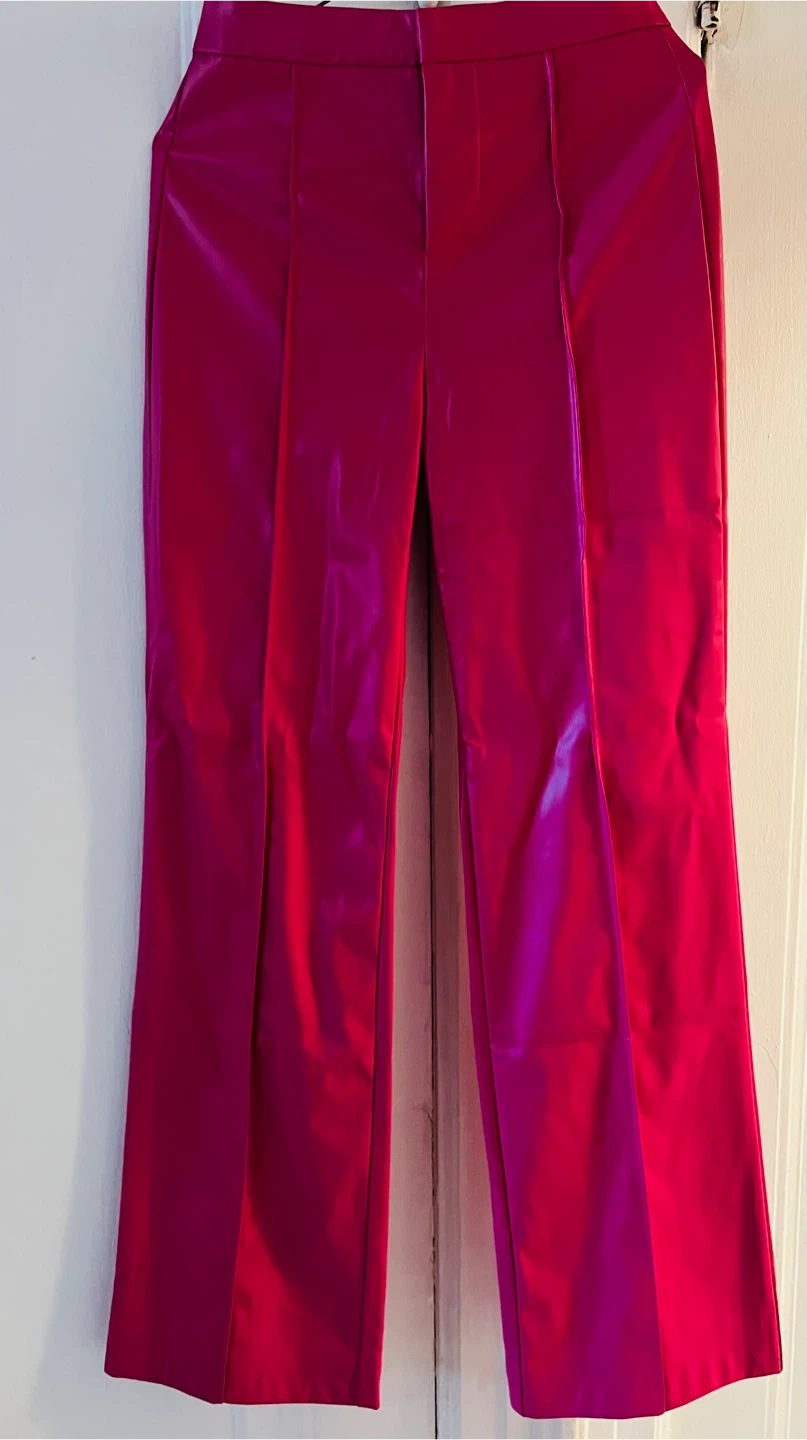 Selling a pair of eye-catching pink faux leather pants! They're new and haven’t been worn before, so they’re still in great condition!