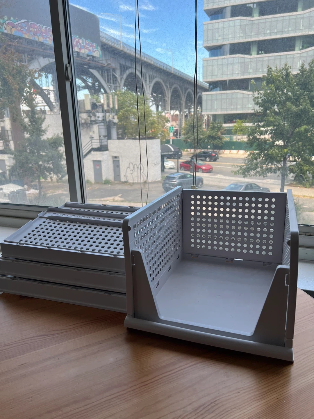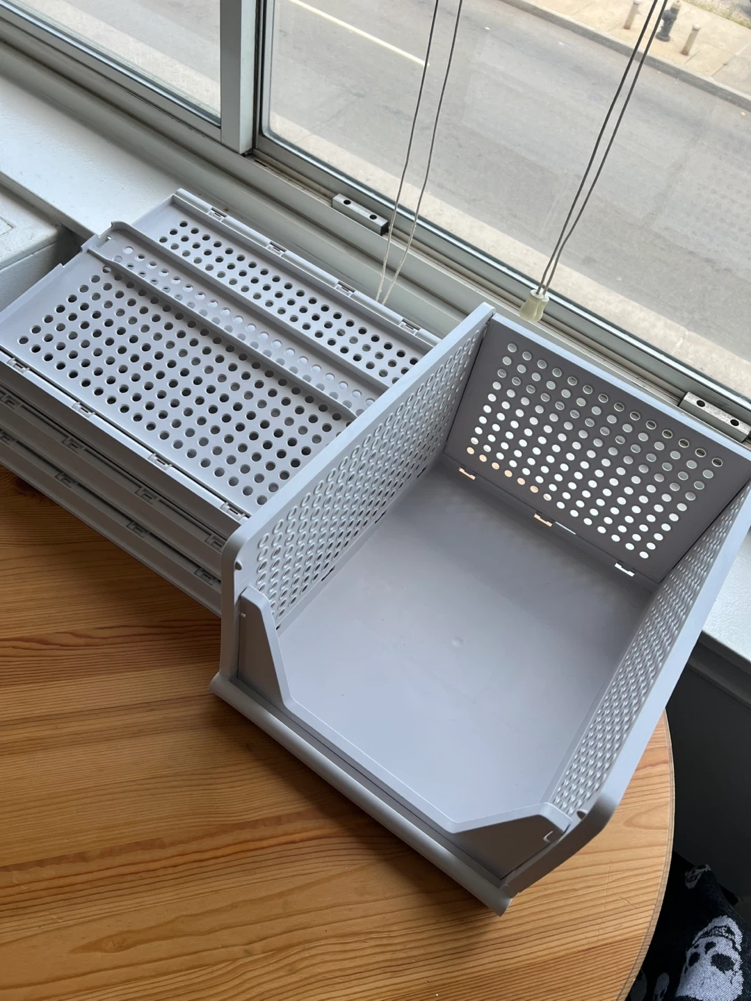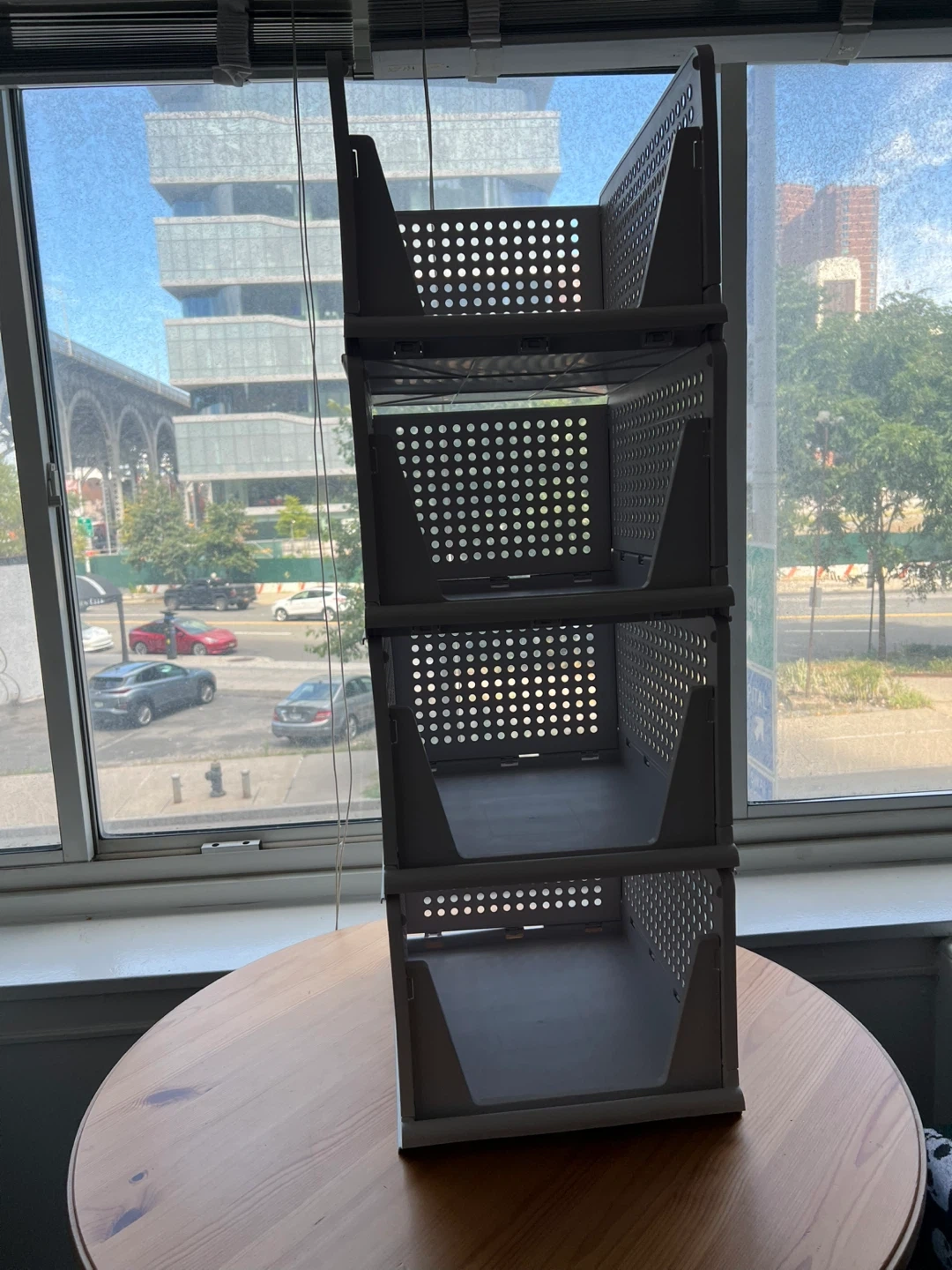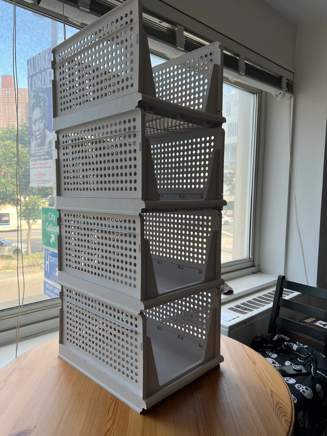 124These stackable storage baskets are perfect for organizing any space! They are in like-new condition and ready to help you declutter. The baskets are a neutral color that will fit in with any decor. Great for closets, shelves, or under the bed!