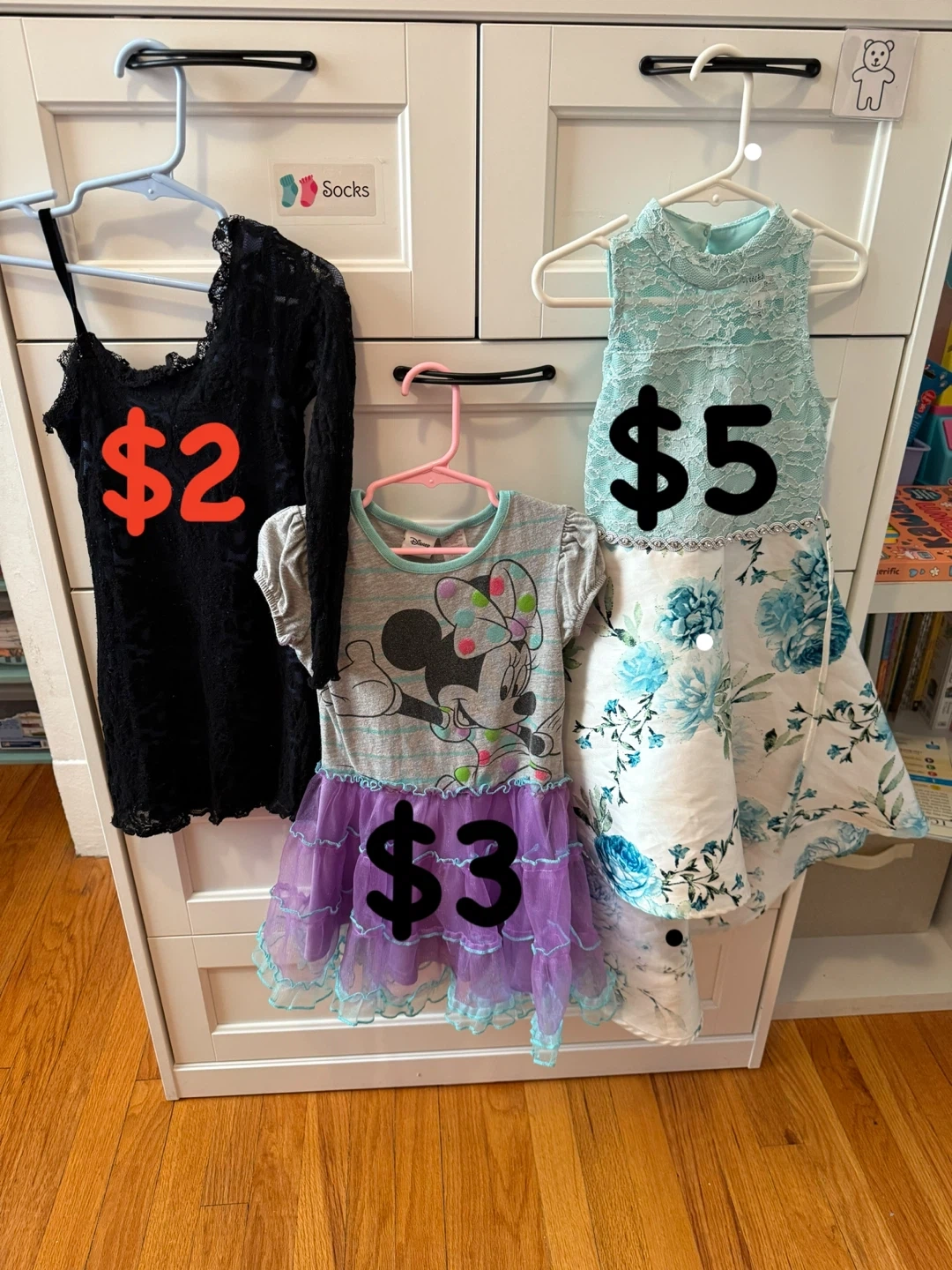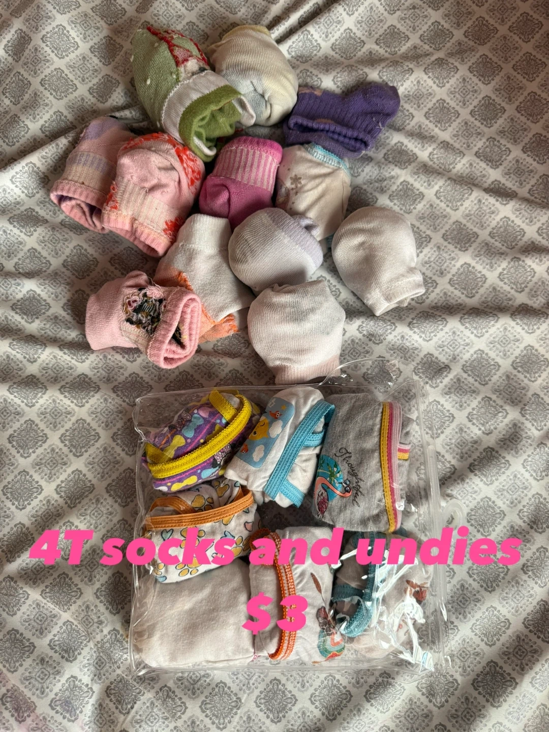 65Selling a bundle of girls' clothing! Includes 4T socks and undies, plus a variety of dresses in different sizes and styles. Prices as marked on the images!