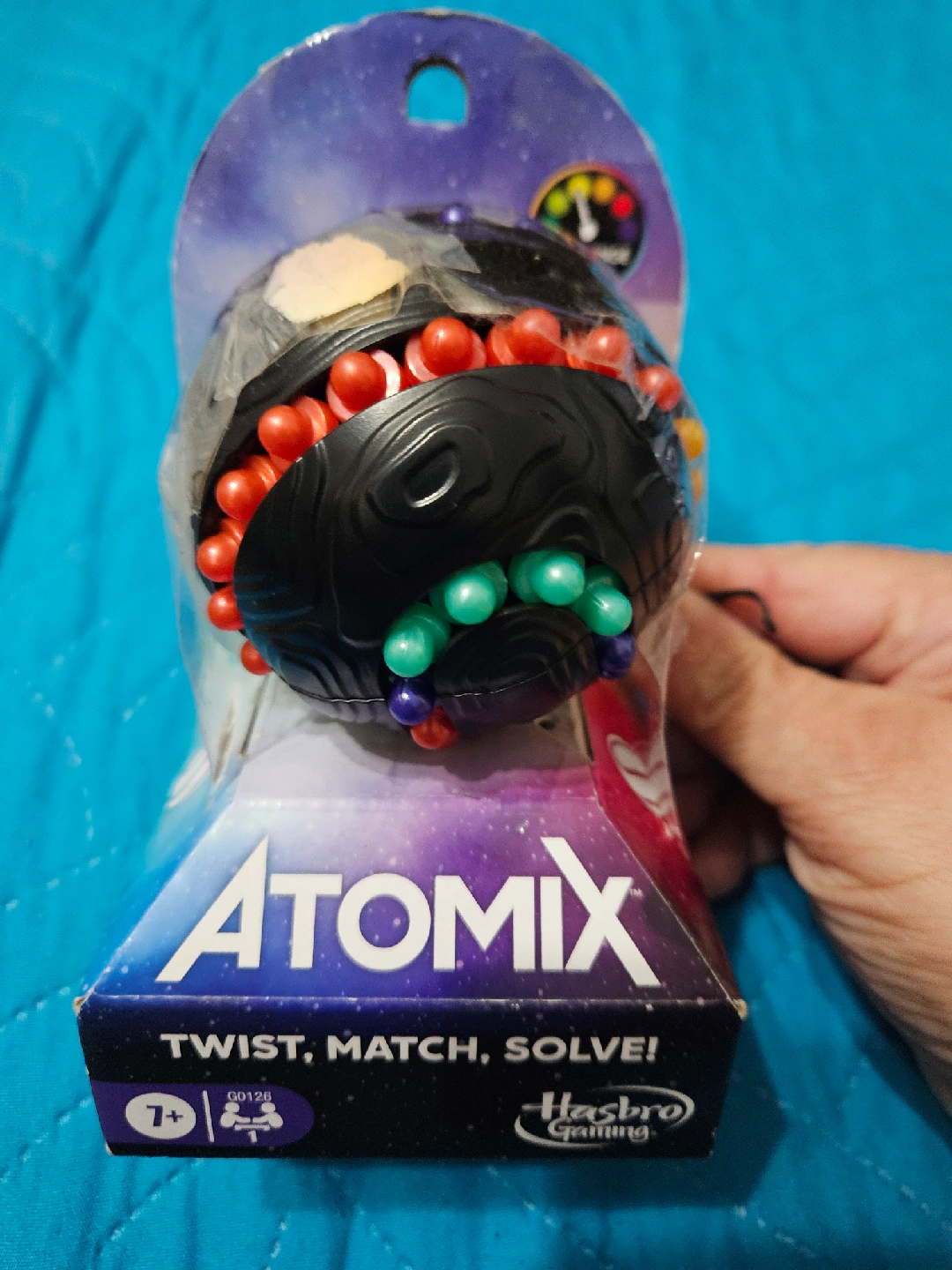 Selling a fun Atomix game! Twist, match, and solve to win! Recommended for ages 7 and up. Scramble the beads and align matching-color beads in the Four Rings path to solve! The box includes the Atomix game unit PICK UP ONLY