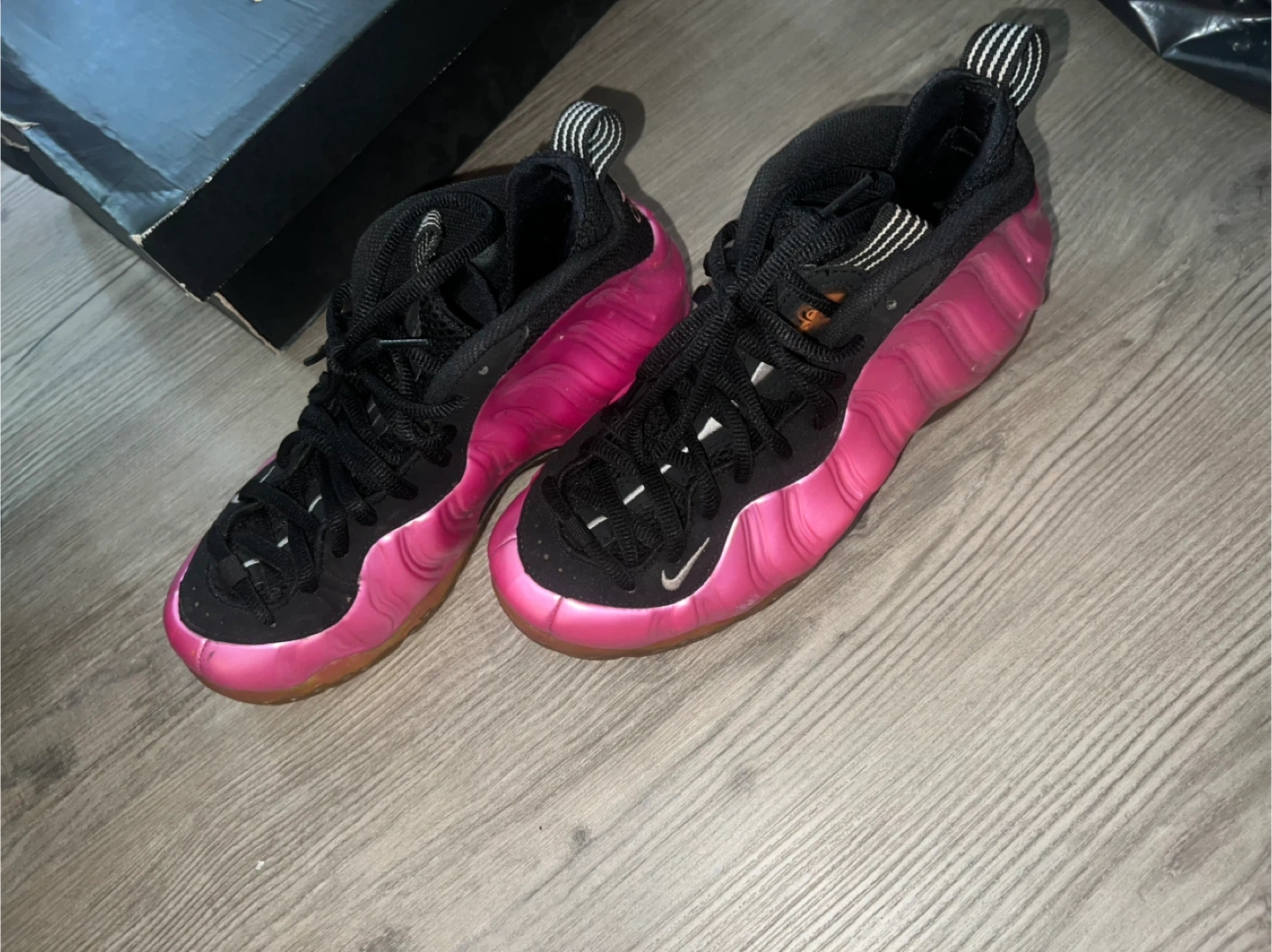 Selling a pair of Nike Air Foamposite One shoes. These shoes feature a pink and black colorway. They are in good condition and ready for a new home!