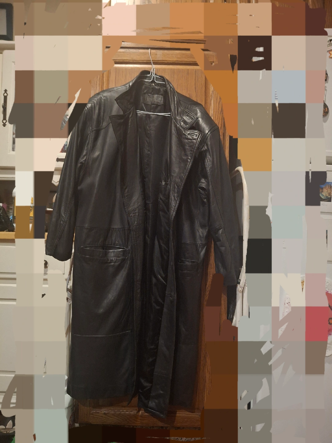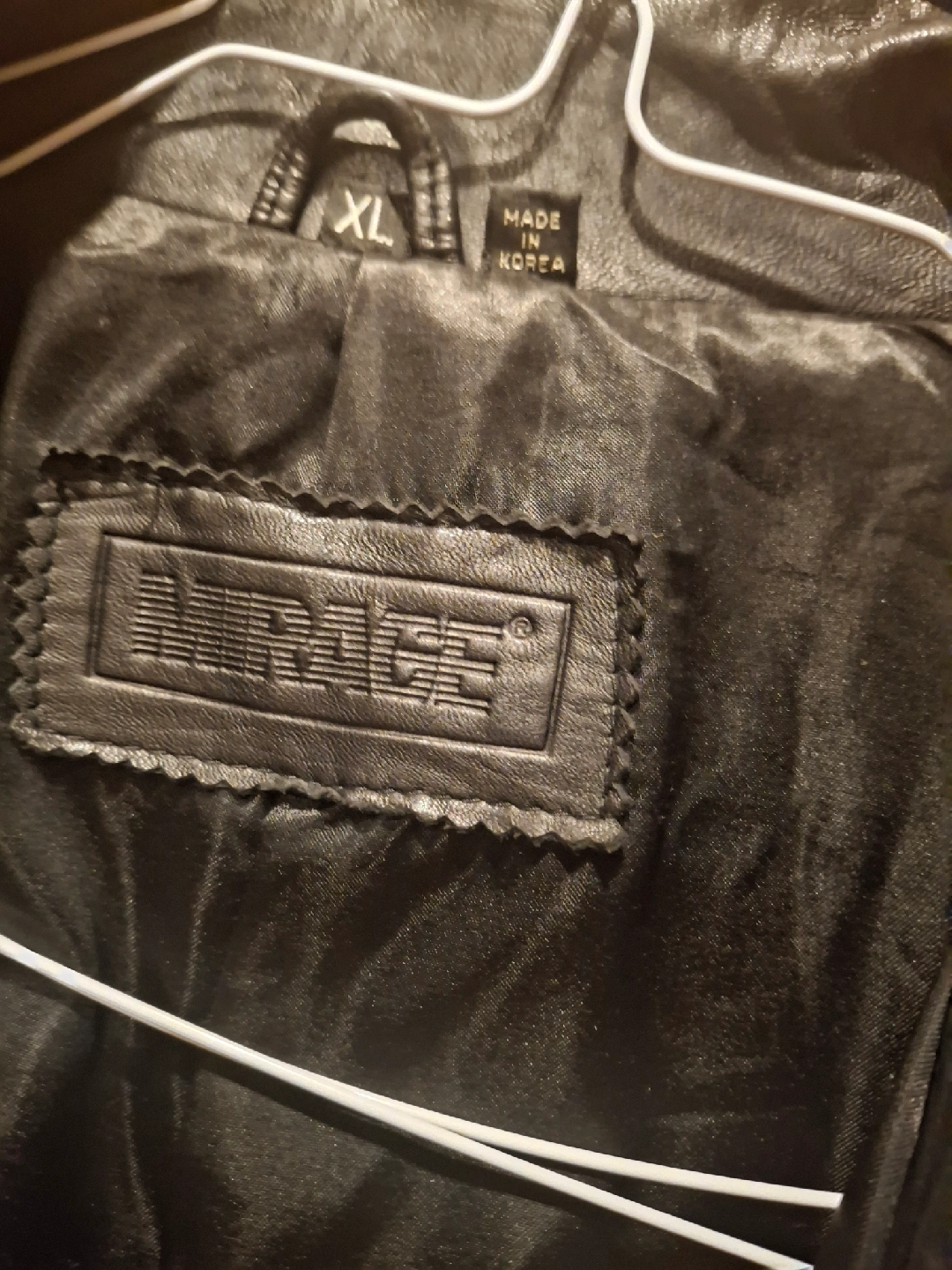 5Selling a Mirage black leather overcoat in size XL. It's in good condition and ready for a new home! Made in Korea.