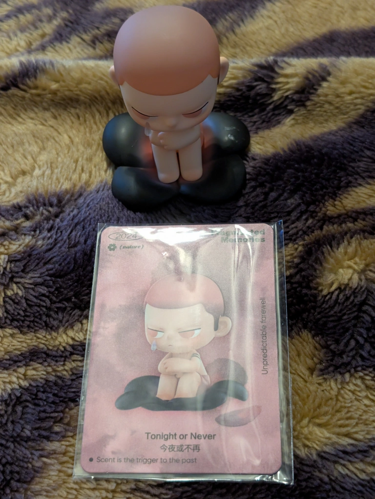 Selling a Kubo Space cute figurine from the Fragrant Memories series, called Tonight or Never. The card indicates it's from the 2024 (nature) collection. The scent is the trigger to the past,. New with out of box.