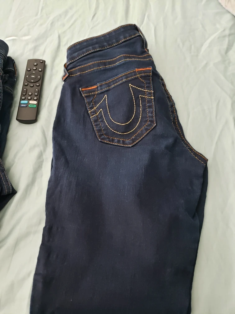 Selling a pair of True Religion jeans in a dark wash! They feature the signature horseshoe logo on the back pockets. These jeans are in great condition and ready for a new home