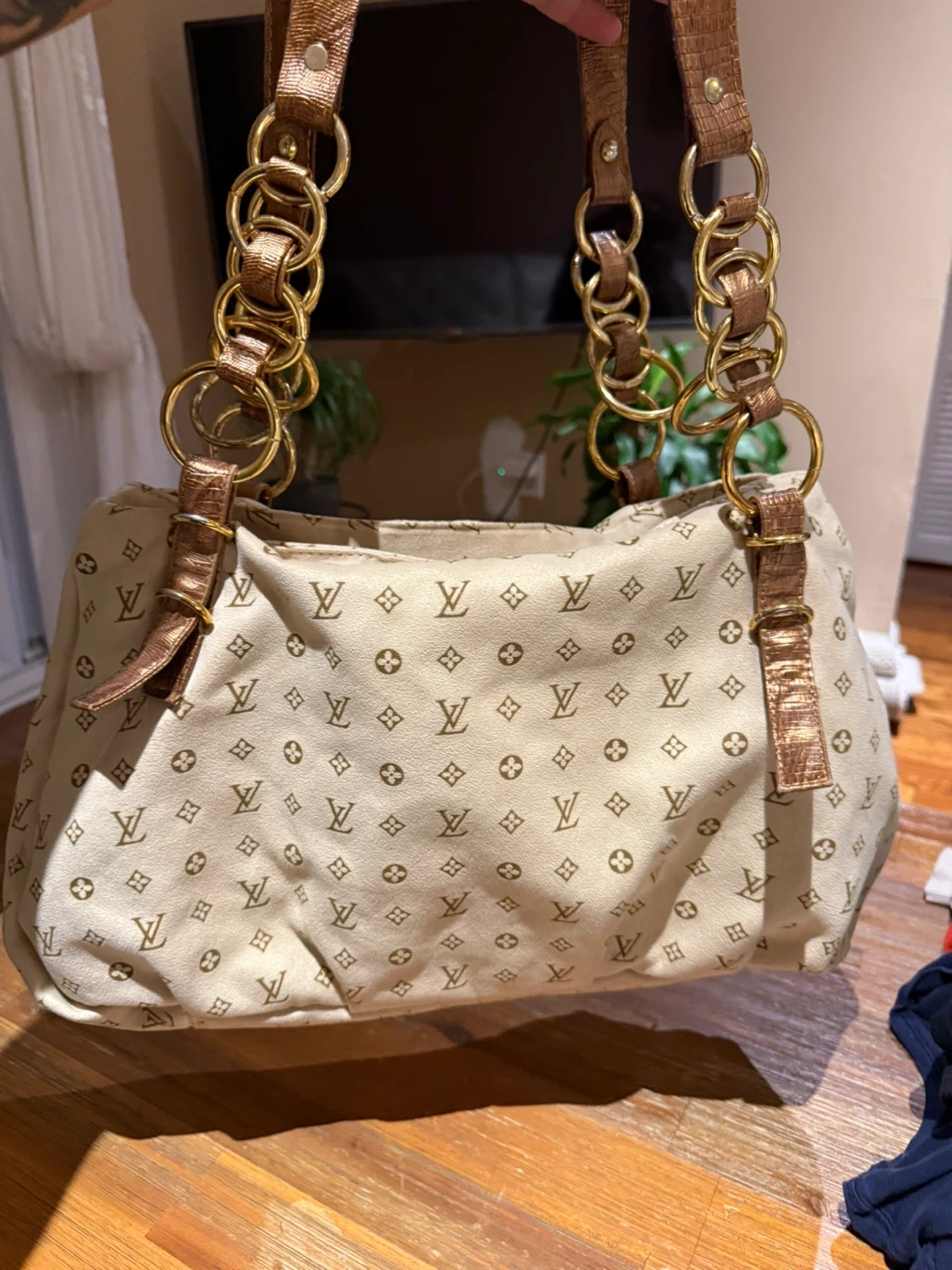 89Louis Vuitton shoulder bag with gold hardware and the classic LV pattern. Comes with a dust bag for storage. It's in good condition and ready for a new home! I am not sure this is orginal but it looks fine for me