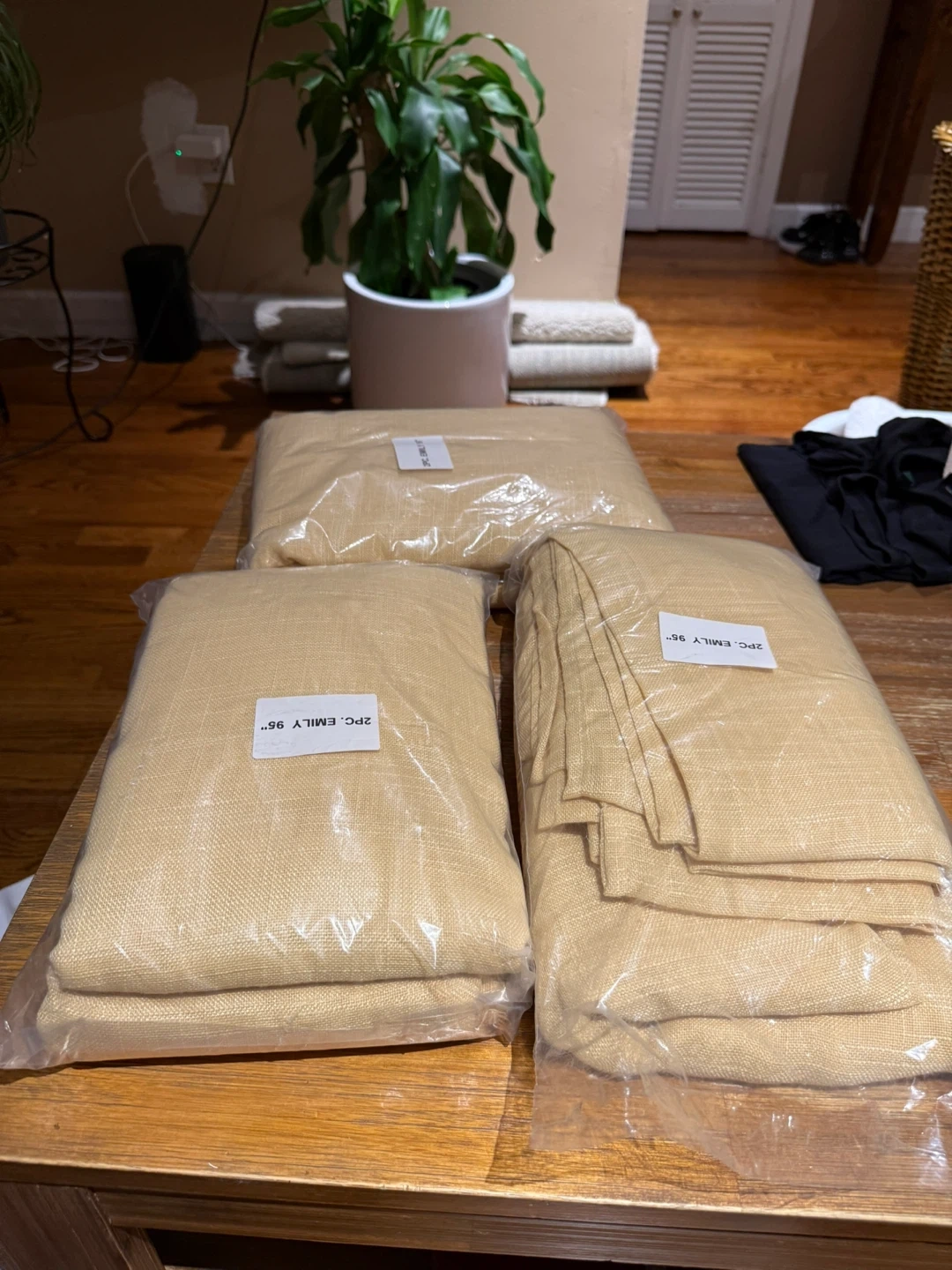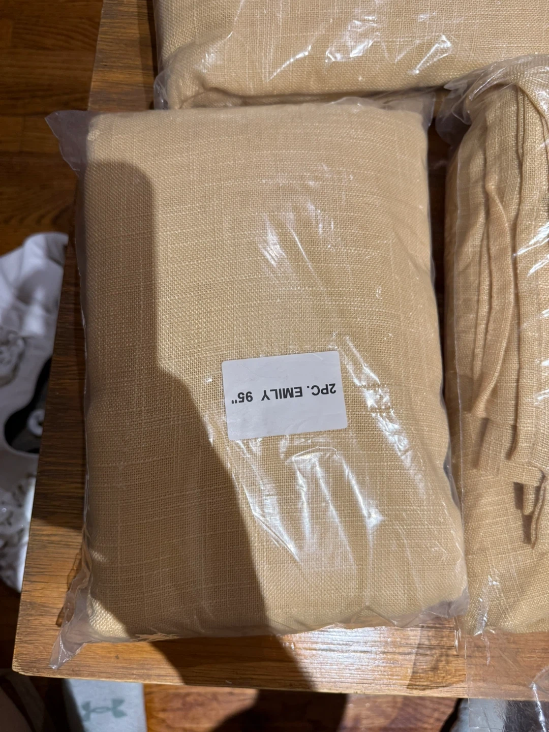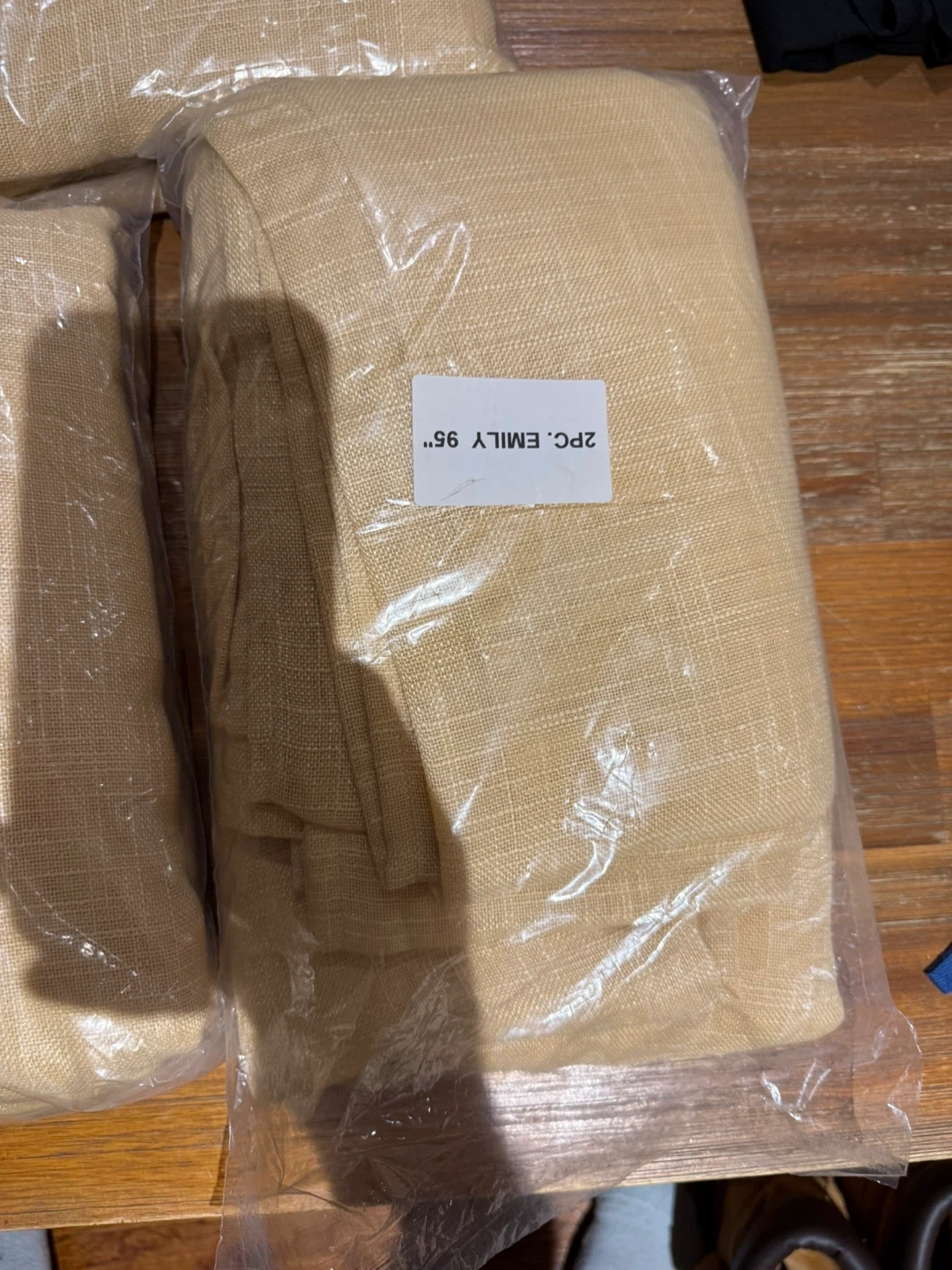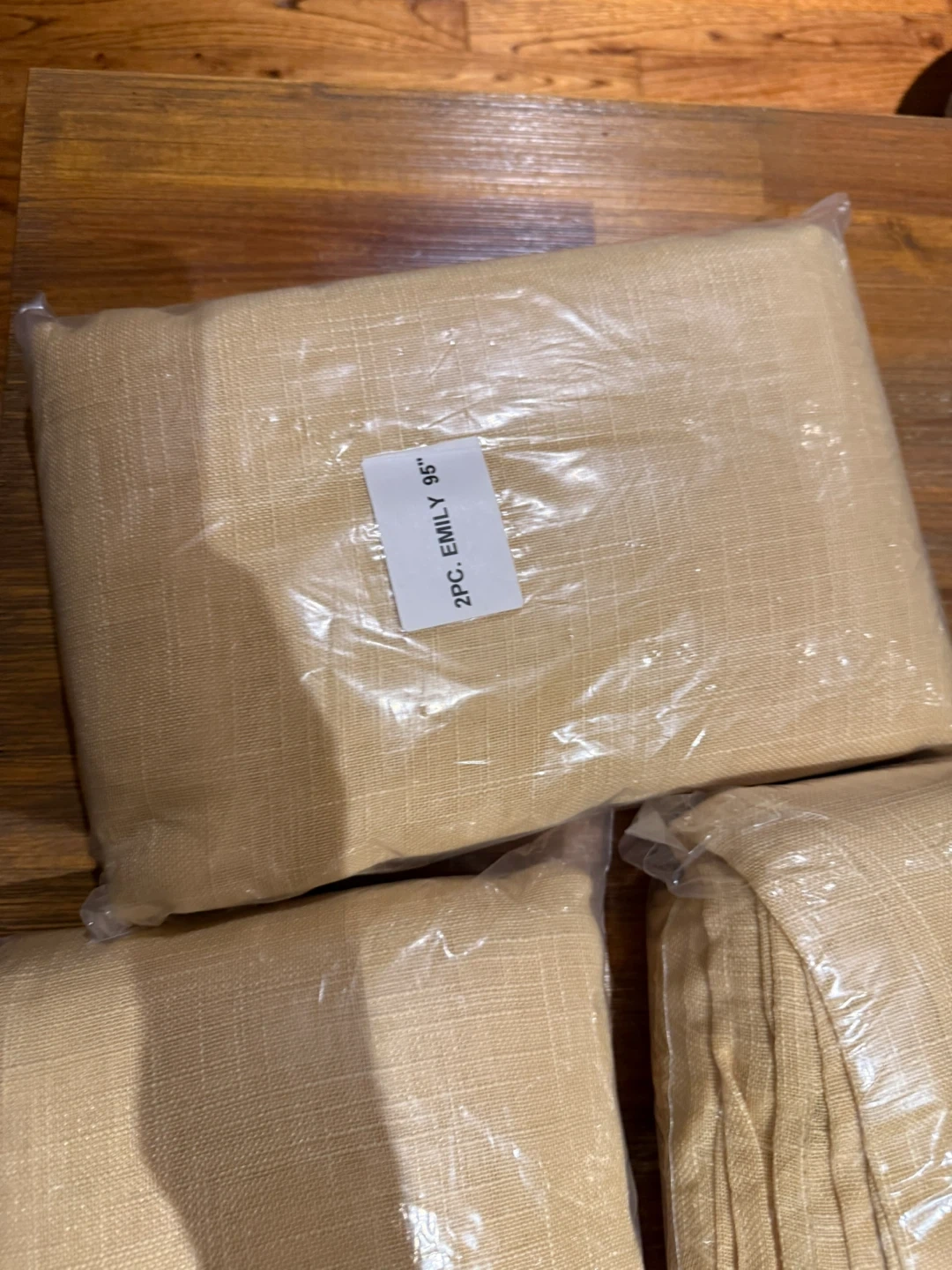 89Selling a set of Diamond Home Linens curtain panels in gold! They are linen textured and have a rod pocket top. Each panel is 52" W x 95" L. They are still in the original packaging! I have 5 of them