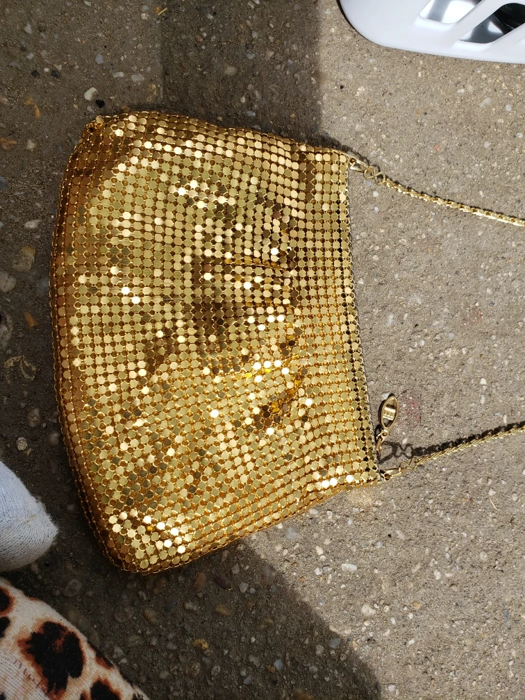 Selling a beautiful gold mesh evening bag! It's in great condition and perfect for a night out or special occasion. The gold color is so eye-catching and the mesh design adds a touch of elegance