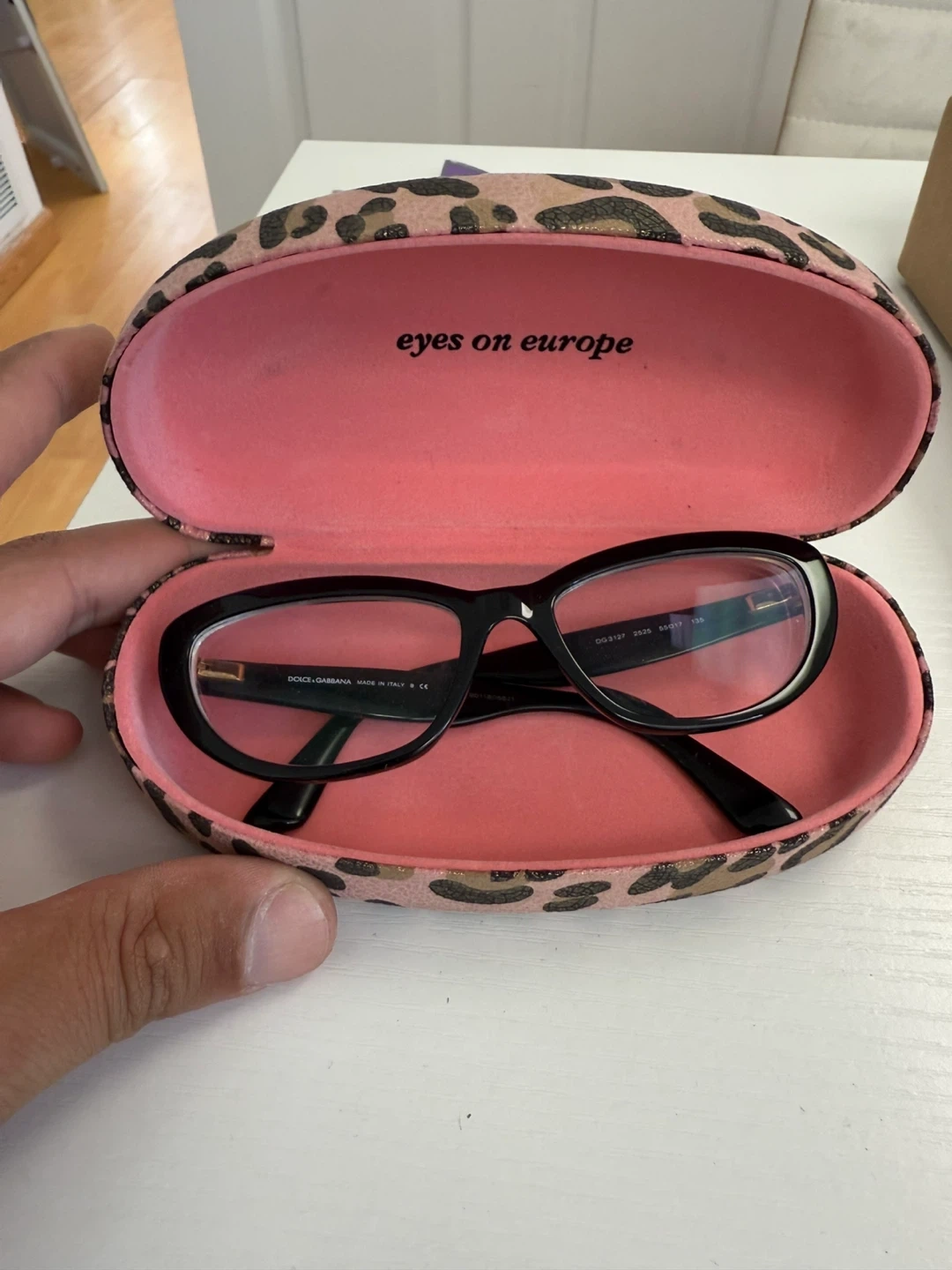 89Selling a pair of Dolce & Gabbana eyeglasses. The model number is DG3127. They are black with a leopard print on the arms. Comes with the case! Original Glass is i think 2.75 and 2.50