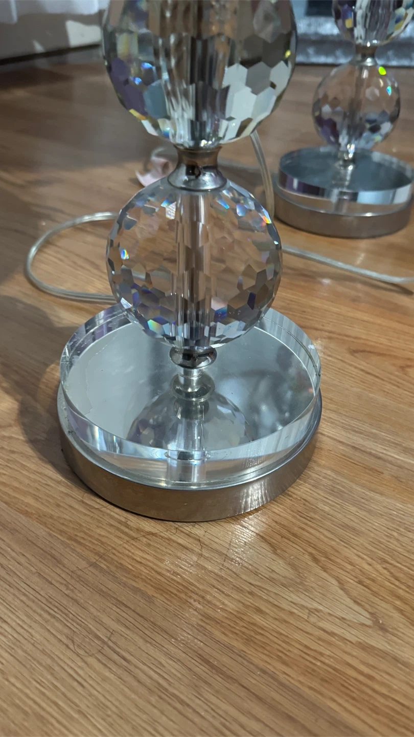 65Selling a set of two crystal ball table lamps! They feature a beautiful crystal ball design and a white lampshade. These lamps would add a touch of elegance to any room