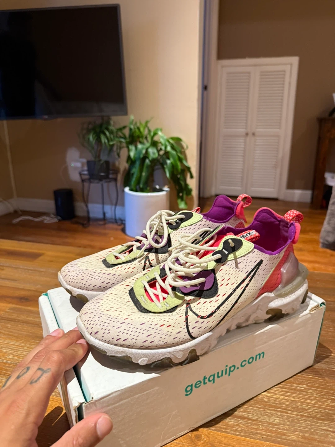 89Selling a pair of Nike React Vision sneakers. They show some signs of wear on the soles, but the uppers are in good condition. Comes with the original box.