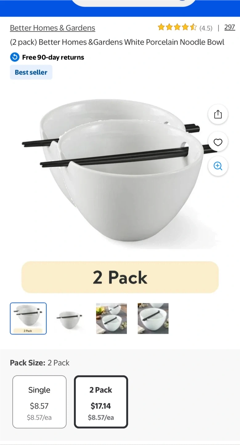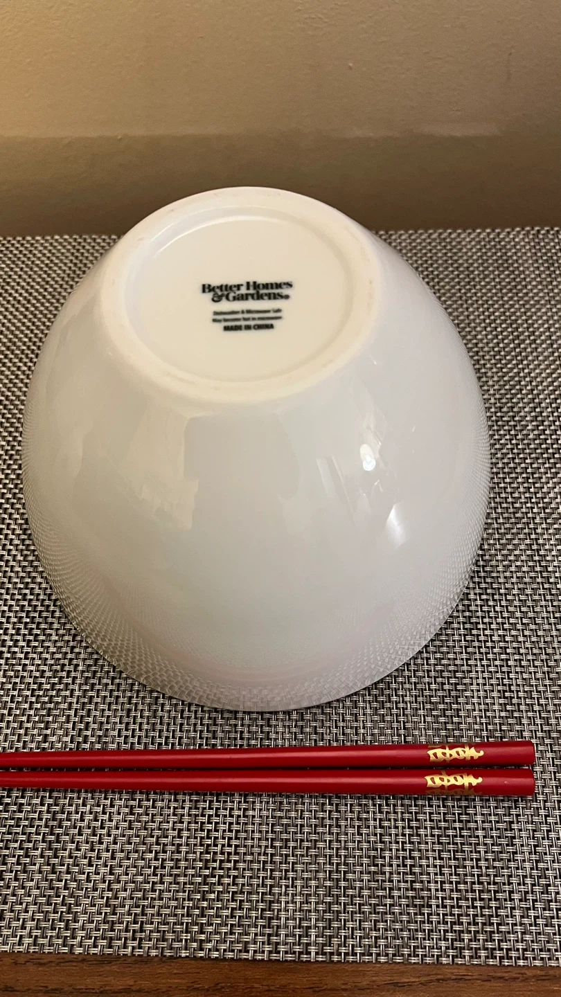 55New - Received as a gift, but won’t use. Retails for $18+tax. White porcelain bowls are perfect for ramen, pasta, Asian-style dishes. Bowls are designed with a round hole on one side and an indent on the other side to rest your chopsticks. Dimensions: 4.5” H and 7” Diameter Bowls are dishwasher and microwave safe; chopsticks should be hand washed. Better Homes & Gardens Pick up only near Astoria Park, Queens NYC 11102 Only Cash (preferred) or Venmo for payment Check out my other listings!