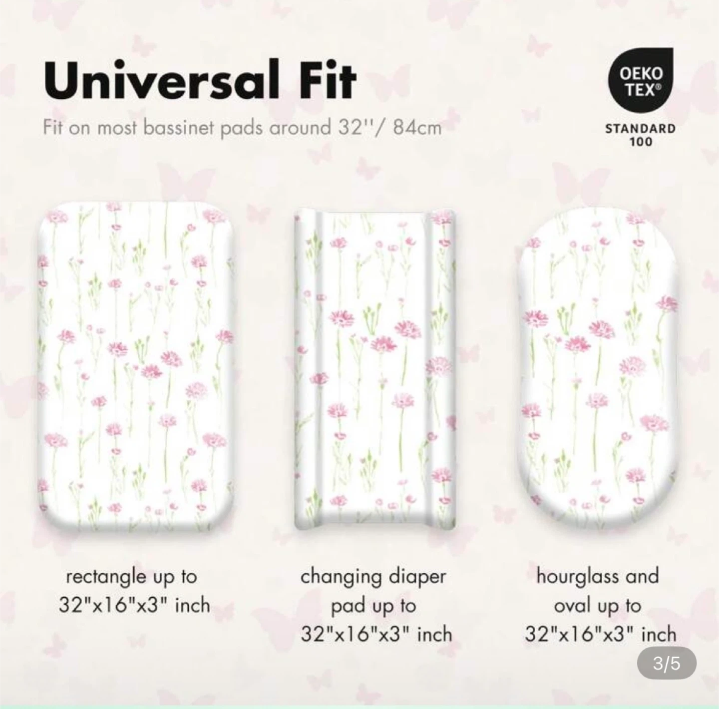 31I'm selling a set of bassinet pad covers that are a universal fit for most bassinet pads around 32 inches/84cm. They fit rectangle pads up to 32"x16"x3" inches, changing diaper pads up to 32"x16"x3" inches, and hourglass and oval pads up to 32"x16"x3" inches
