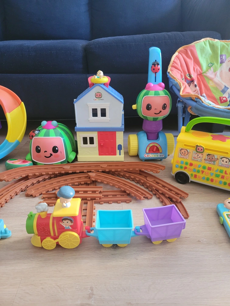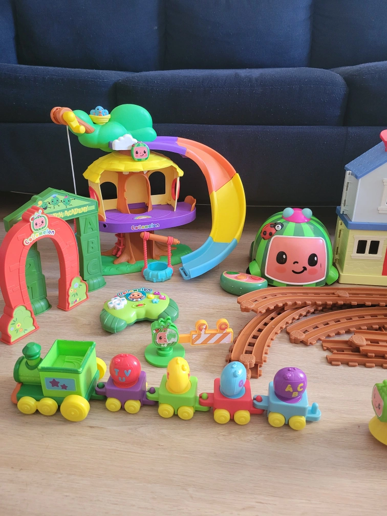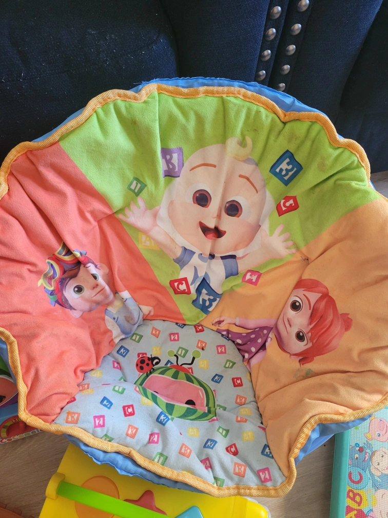 Selling a Cocomelon play set. It includes a chair and a variety of toys. Perfect for toddlers!