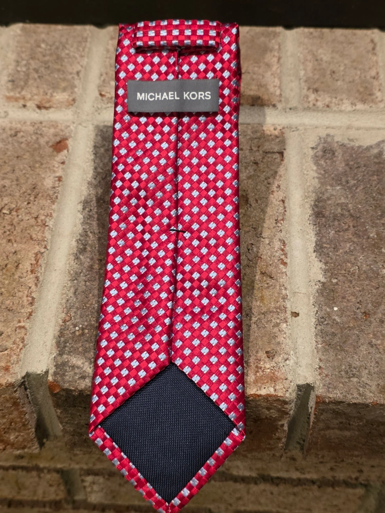 I'm selling a Michael Kors necktie! It features a red base with a subtle patterned design. Perfect for adding a touch of sophistication to any outfit Pick up in Naperville near naper blvd and 87th street or near downtown Naperville off of Chicago and Charles
