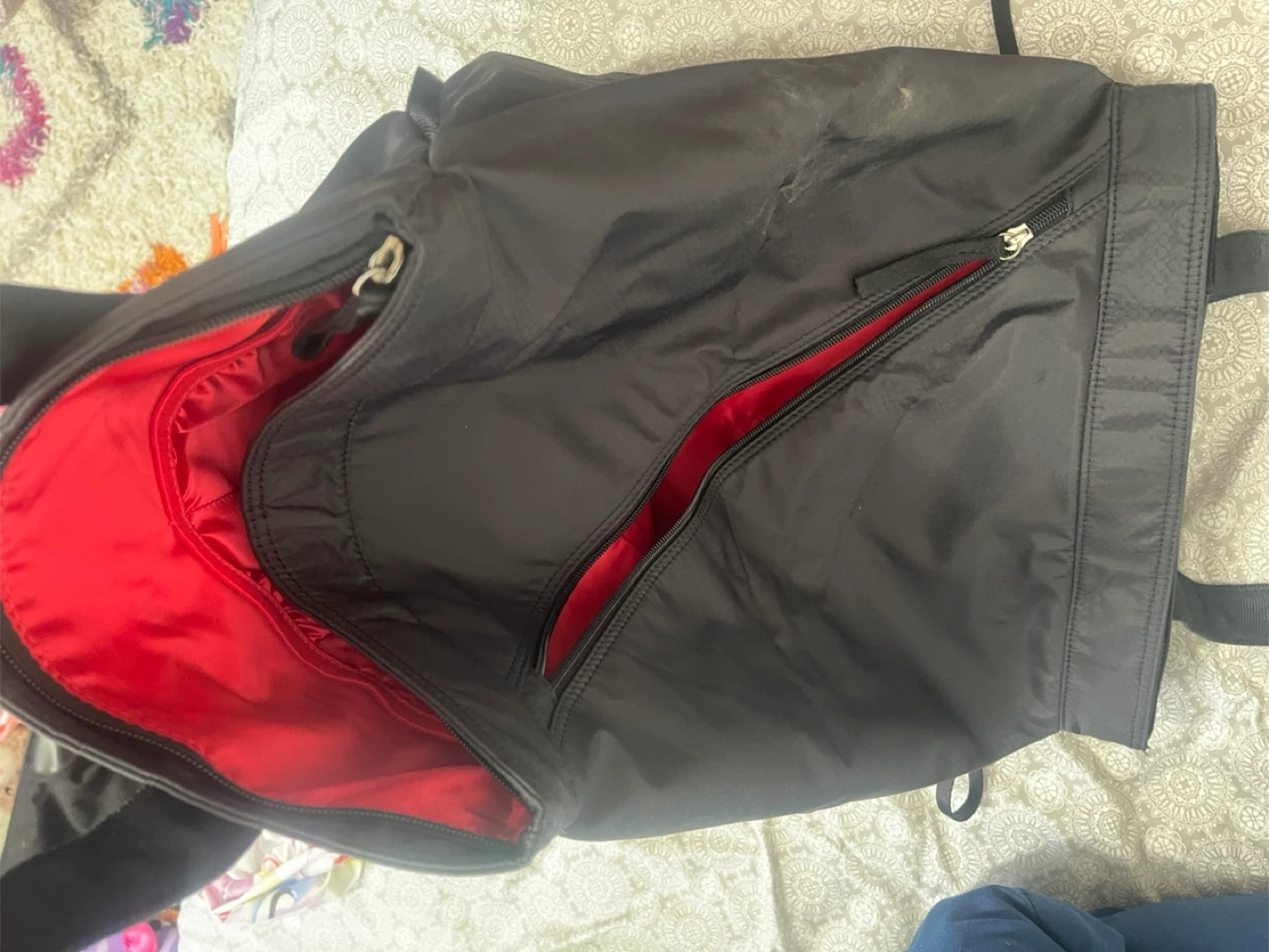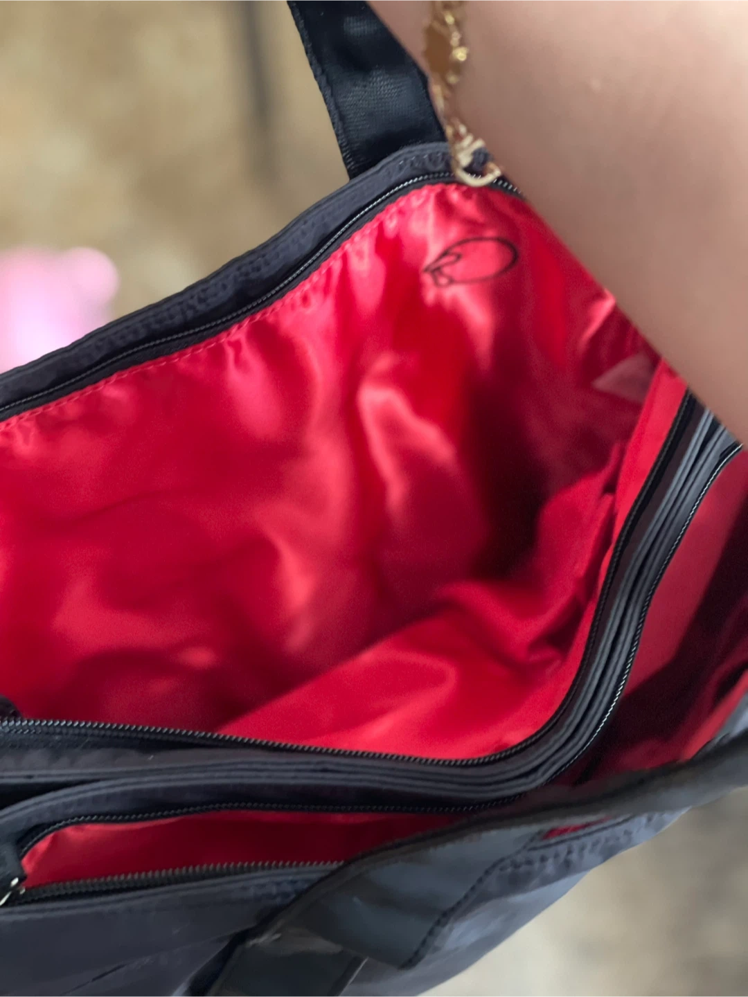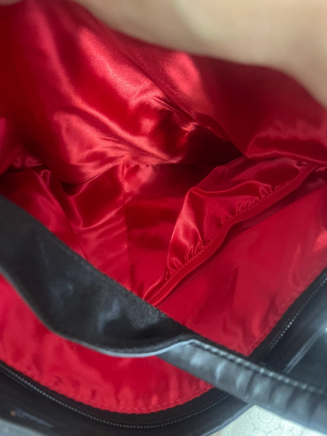 Selling a black Nike tote bag! It's in great condition and perfect for carrying your essentials. The interior is a vibrant red color