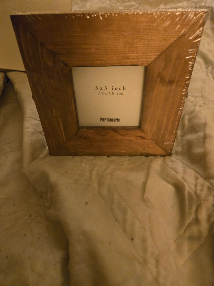 908I'm selling a new Pier 1 Imports picture frame! It's a 3x3 inch wooden frame, perfect for displaying your favorite memories. The curved stand is approximately 5 inches tall. the wooden fram is 5.5 inches square. Wrapped in original package and box. This is a Thrify pick ( selling on ebay for $15) will go fast! Friday or Sunday meet up in Astoria.