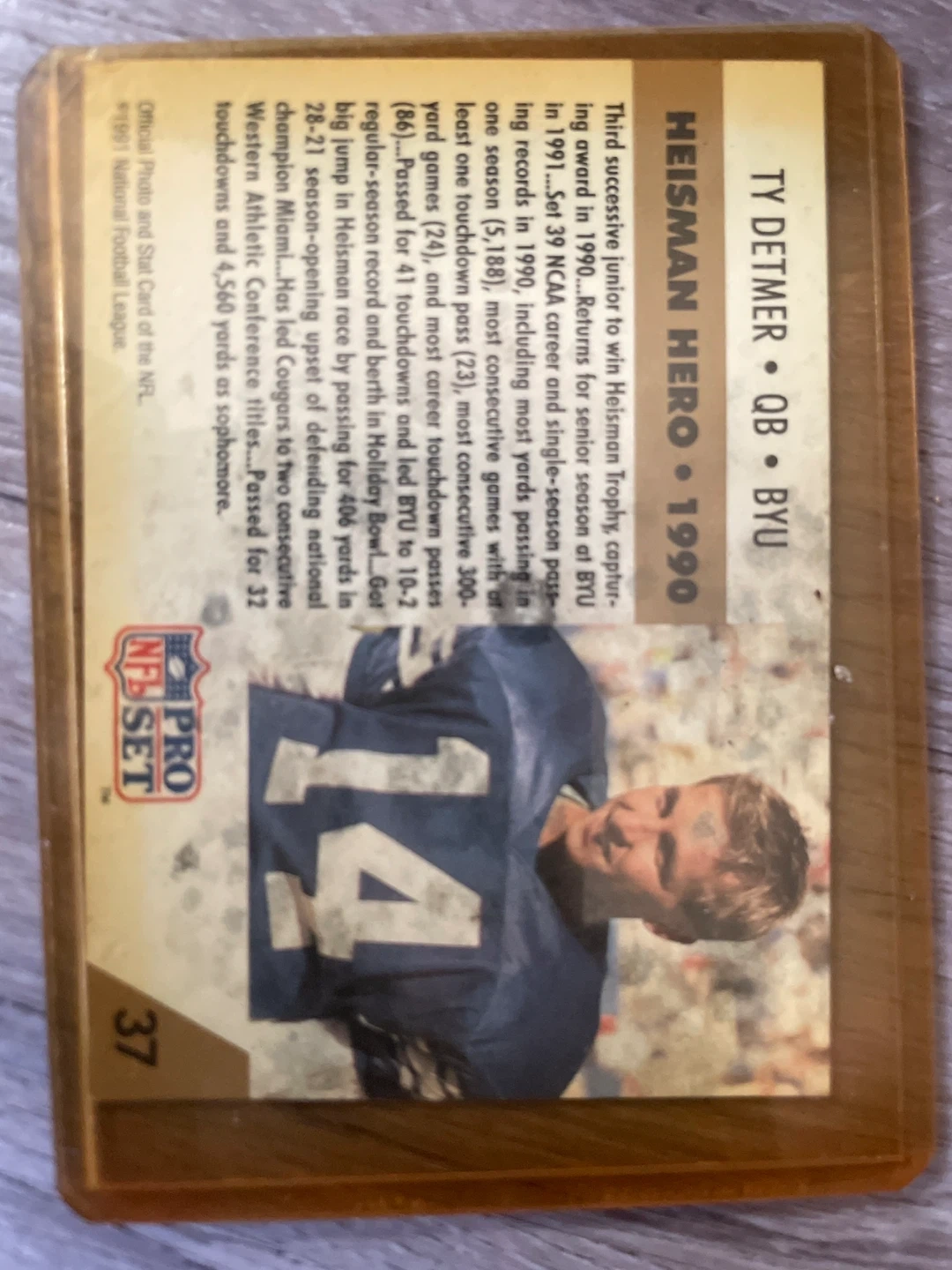 Selling a Ty Detmer Heisman Hero 1990 football card. It's in good condition and would be a great addition to any collection