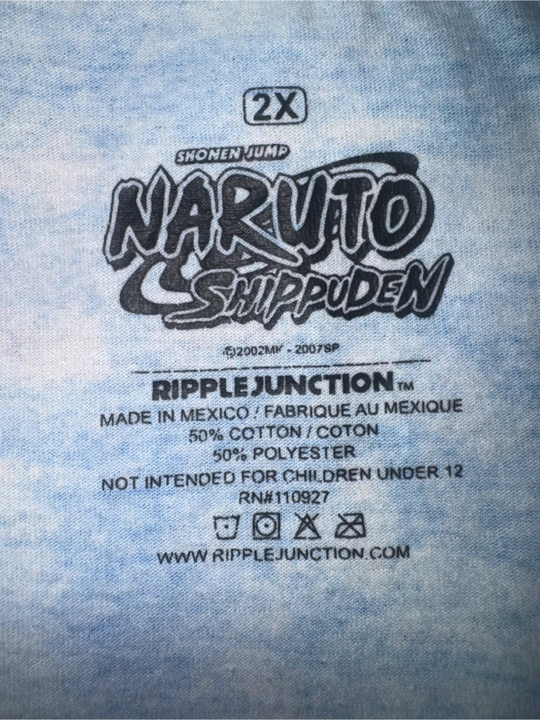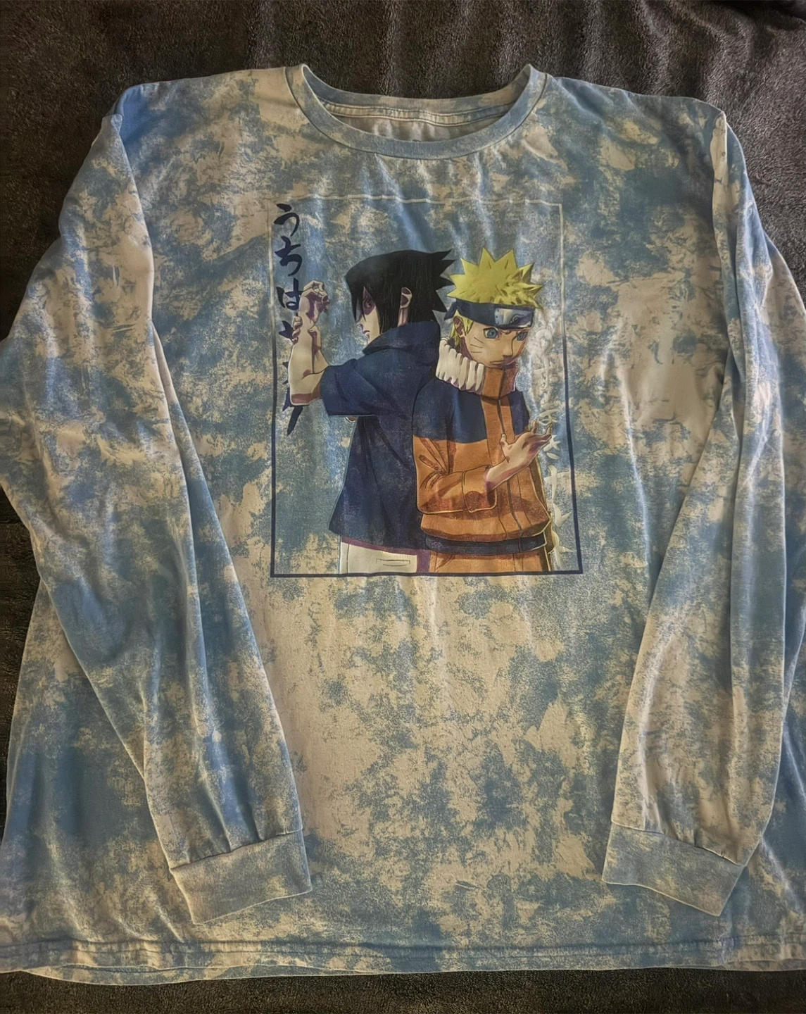Selling a Naruto Shippuden long sleeve shirt in size 2XL! The shirt is made of 50% cotton and 50% polyester. It's in great condition and features a cool design. Perfect for any Naruto fan!